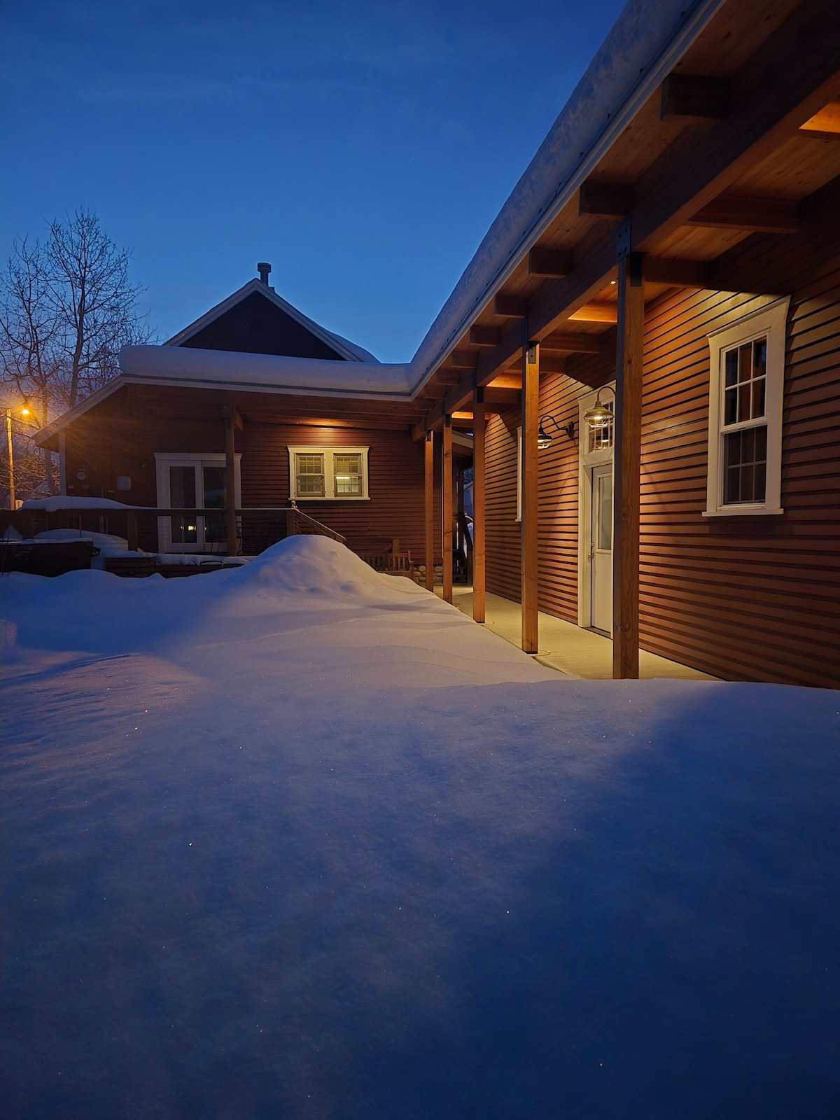 – 765 Sq Ft, íbúð á 1. hæð – Einkaverönd með frábæru útsýni yfir fjallið – 2 stórar matvöru-/áfengisverslanir m/í 5 mínútna göngufjarlægð – 2 heitir pottar steinsnar frá útidyrunum, þrifnir daglega með upphituðu skiptiherbergi – Skilvirk gasarinn – Ókeypis rúta að fjallinu og miðbænum — 5 mín hvora leiðina sem er – Fullbúið eldhús með kryddum, blandara og fullbúnum eldunarbúnaði – Ókeypis kaffi, te og haframjöl í boði – Sápa, sjampó og hárnæring fylgir -Fjarlægð frá bláu ribbon-vatni og CORE-slóða.