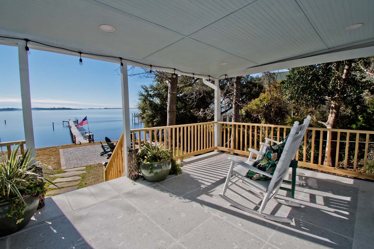 Míla af mögnuðu útsýni yfir vatnið í átt að Swansboro frá þessum bústað við ána sem hefur verið endurnýjaður að innan sem utan. A mile dirt road takes you off the beaten path & a private setting on the end of a dirt lane with only few other fishing cottages. Þú munt elska frið og ró og hressandi gola. Njóttu sólarupprásar/sólseturs frá bryggjunni! Aðgangur að kajökum, kanó og 2 róðrarbrettum. Njóttu ýsusprengjunnar fyrir fisk, stöku höfrung og annað fuglalíf.