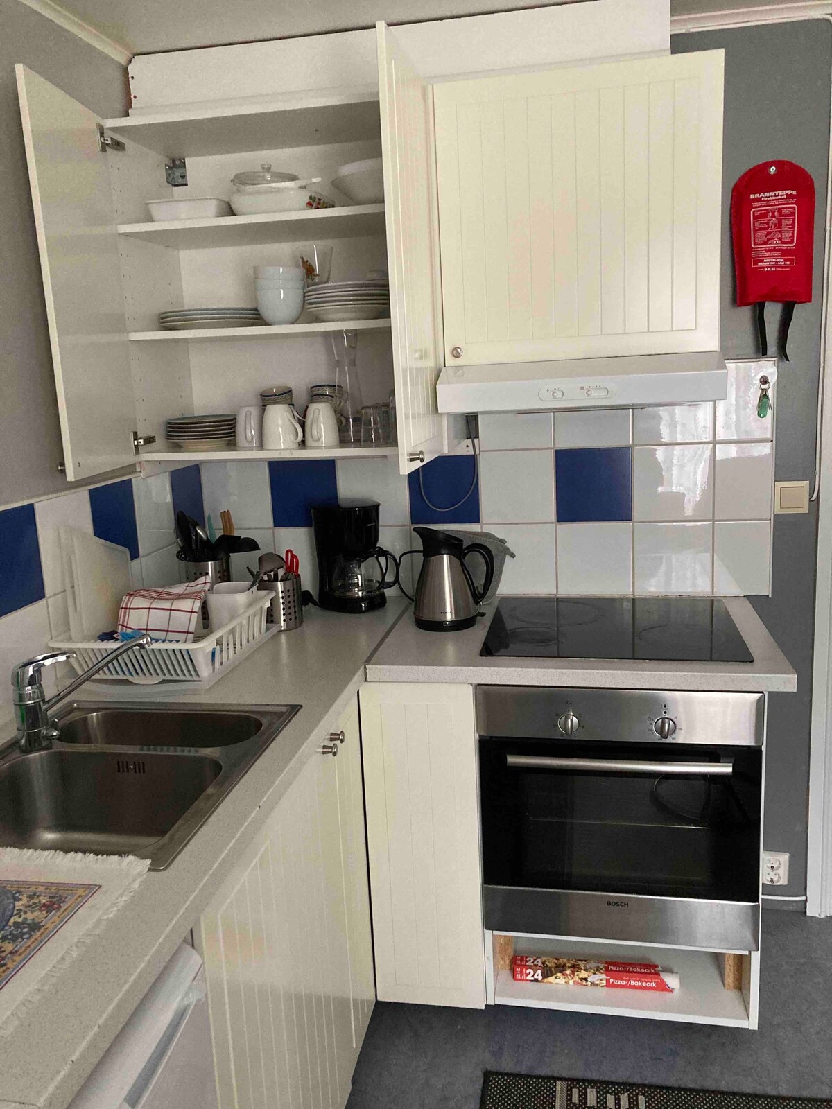 Íbúðin okkar (u.þ.b. 30 m2) er með vel búið eldhús og stofu með sjónvarpi, hraðri nettengingu og tveimur góðum einbreiðum rúmum. Íbúðin er einnig með sérinngang, lítinn gang og gott baðherbergi með þvottavél. Athugaðu að þetta er kjallaraíbúð með lægra lofti. Hægt er að heyra skref að ofan að degi til. Bílastæði í boði.