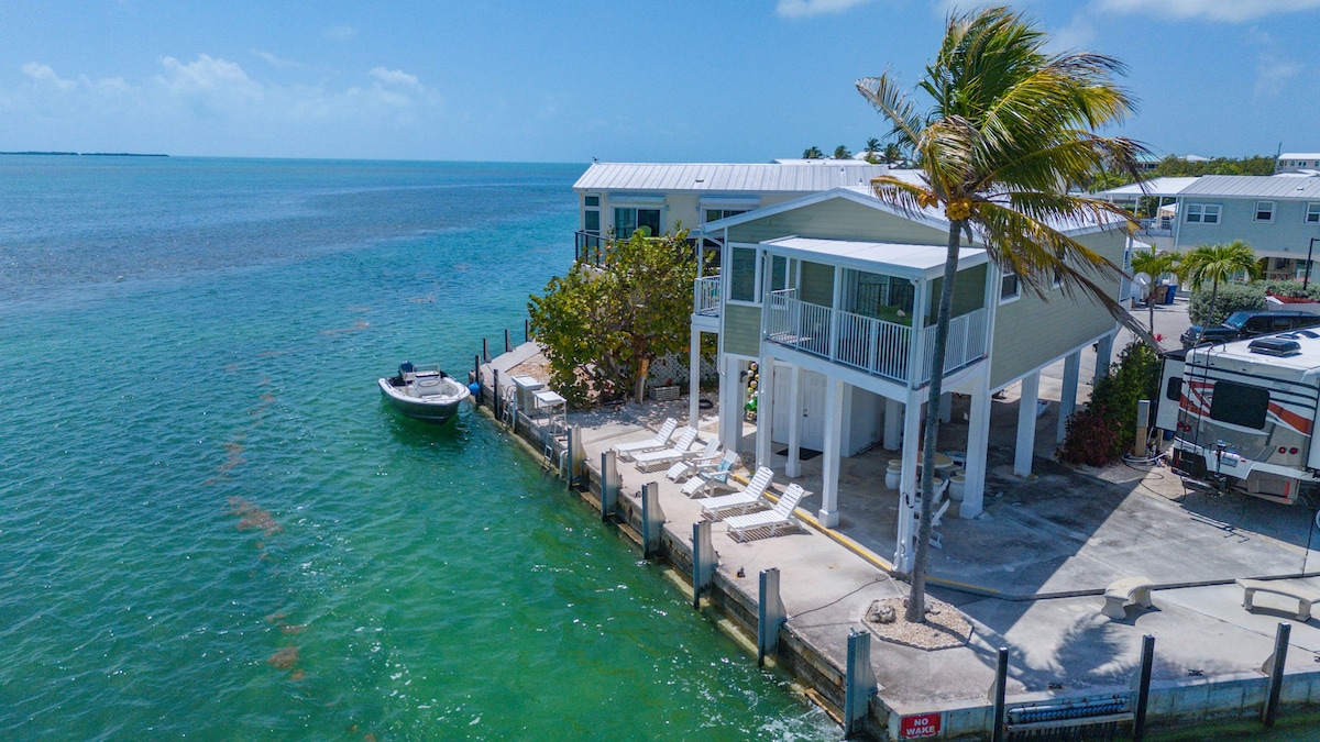 *PERFECT LOCATION! * 35' Seawall *AWESOME 2 bedroom 2 full bath waterfront stilted house in Cudjoe Key. Located in the lower Florida Keys at MM# 23 only 25minutes to Key West. Located in the gated community of Venture Out Resort. *Sleeps 6 *55" TV *A/C & heat *Fully equipped kitchen *Brand New Amenities including grill, 4 Bikes & 2 two-person Kayaks *PLUS: Pool, HotTub, Marina, Boat Ramp, Store, Playground, Game Room, Tennis, Library, etc. Too much to list!