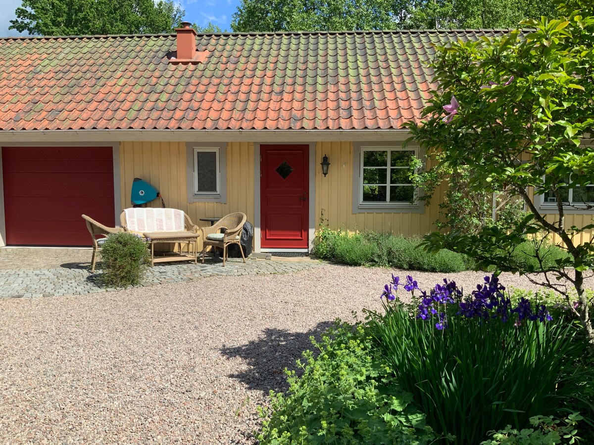 Meet our lovely red cottage in Småland surrounded by forest, hills and lakes. With all the comfort you need for a pleasant stay. Enjoy a cozy evening by the wood stove. The house has a big private garden where you can relax and make a campfire at the fire pit. Go fishing or take a swim in one of the lakes nearby. And maybe you see deer, foxes or moose from our sunny porch. Go skiing at the ski-slope, visit a moose park or go down the zippline. April-October we rent out 2 sit-on-top kayaks.