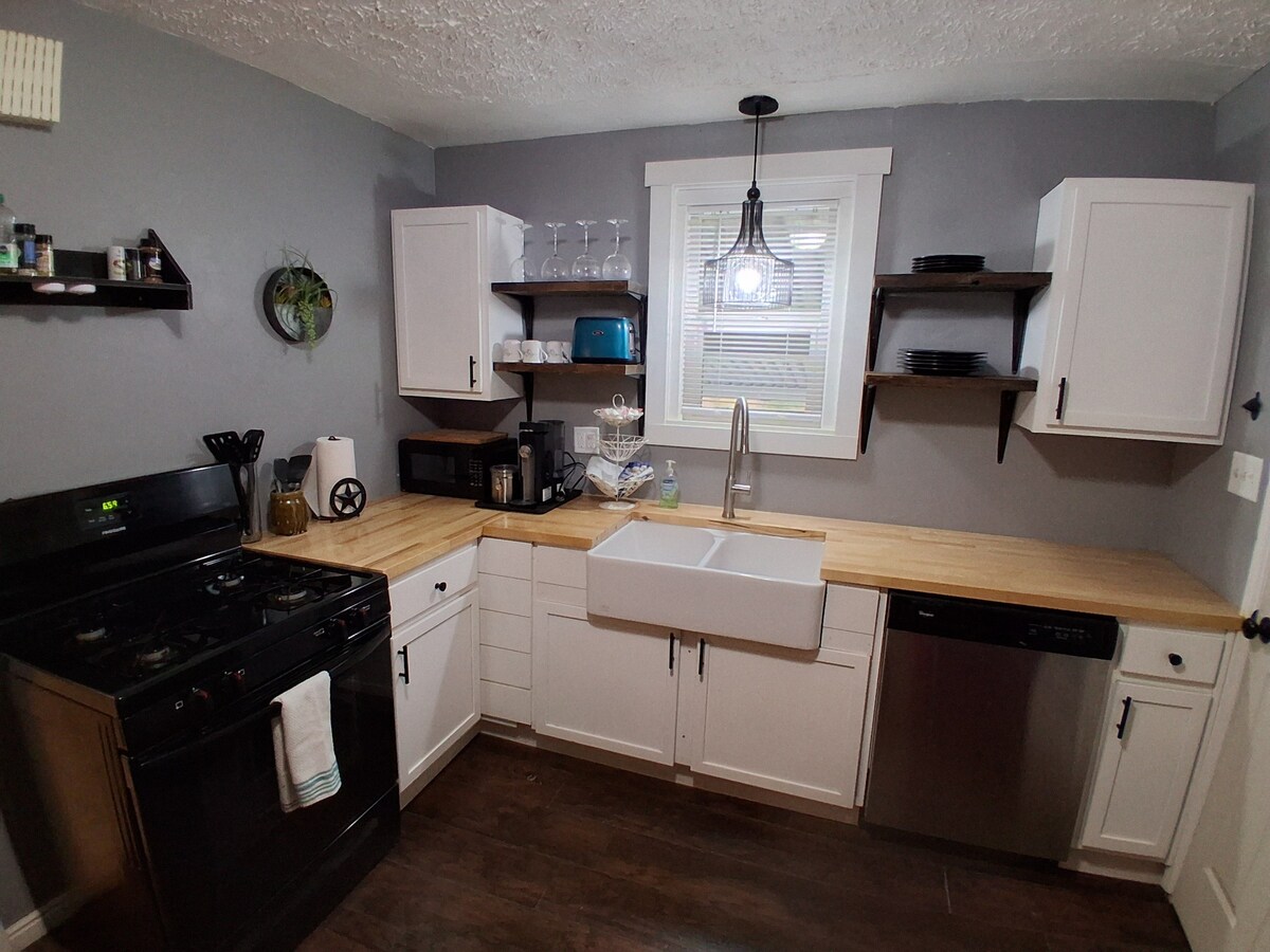 Verið velkomin í heillandi, nýbyggða hlöðuathvarfið okkar. Þetta einstaka frí er staðsett í afskekktu og friðsælu umhverfi og býður upp á fullkomna blöndu af sveitalegum sjarma og nútímalegum lúxus. Njóttu hvíldar í stillanlegu rúmi sem er hannað fyrir bestu þægindin og eldaðu veislu með bestu nýju tækjunum sem eru í boði. Þessi hlaða er kyrrlátt og stílhreint athvarf hvort sem þú ert að leita að friðsælu afdrepi eða bækistöð til að skoða þig um. Upplifðu það besta úr báðum heimum í þessum kyrrláta, einkarekna griðastað.