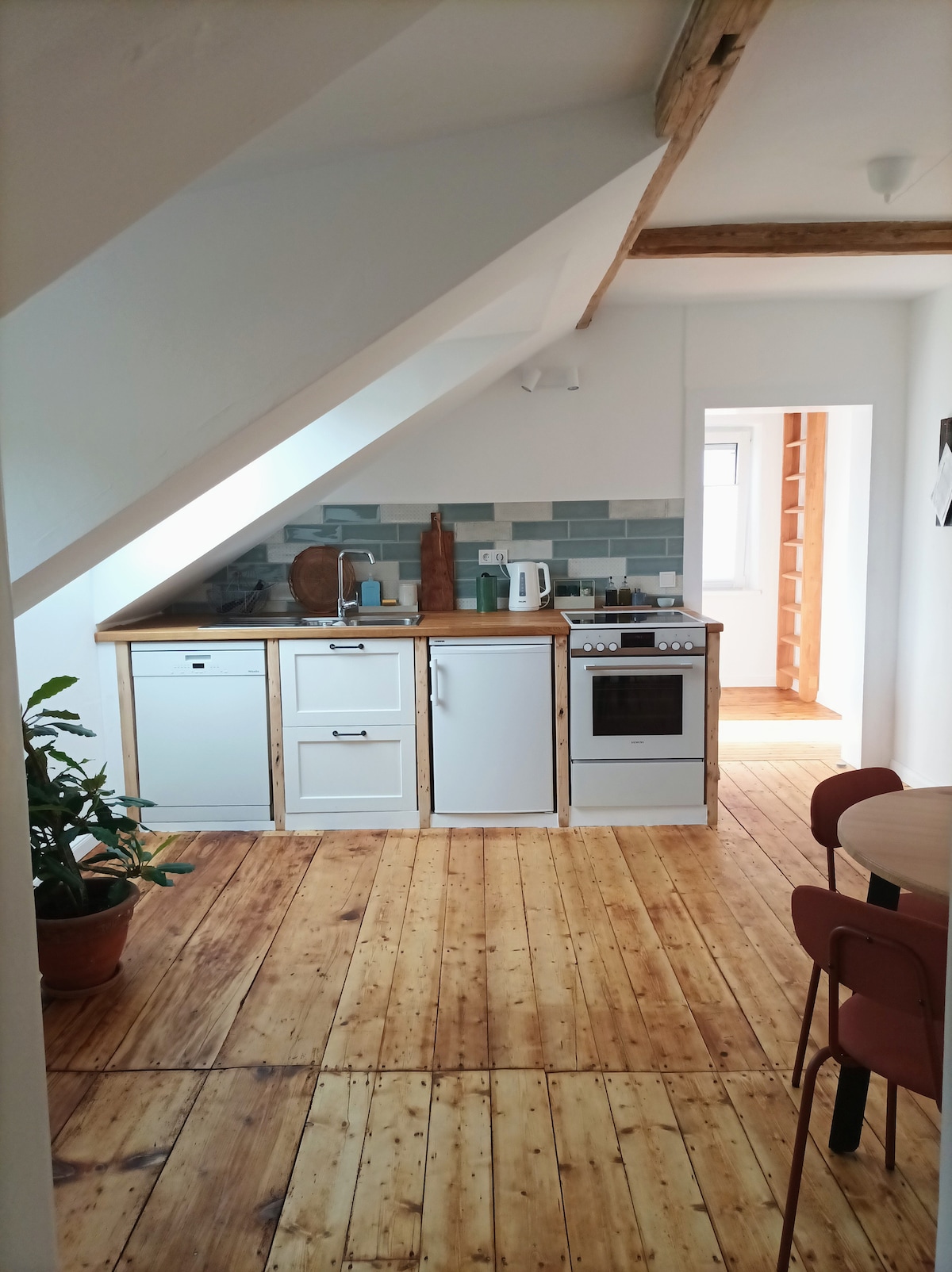 Upplifðu það besta sem Koblenz hefur upp á að bjóða í glæsilegu loftíbúðinni okkar sem er staðsett miðsvæðis. Slakaðu á í rúmgóðu stofunni með Chesterfield sófa Skemmtu þér við að spila borðfótbolta. Eldaðu í stóru, fullbúnu eldhúsinu og komdu saman við borðstofuborðið til að fá ógleymanlega máltíð. Þessi eign er tilvalin fyrir fjölskyldur eða vinahóp og býður upp á blöndu af nútímaþægindum og klassískum sjarma.