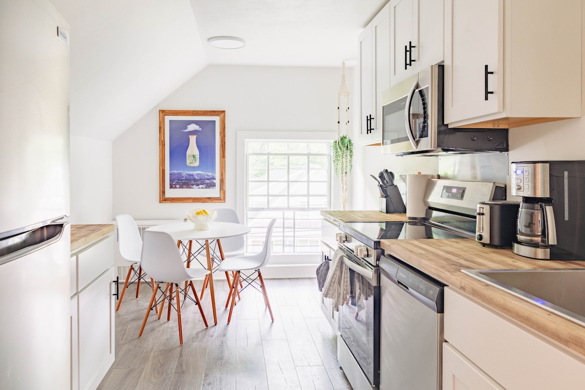 Notchbrook Nook er staðsett efst á Notchbrook-vegi í hópi íbúða sem eru með útsýni yfir fallegt útsýni og eru aðeins í nokkurra mínútna fjarlægð frá Stowe Mountain Resort. Sundlaugin er opin yfir sumarmánuðina þar til Labor Day & opnar aftur í lok nóvember fyrir skíðatímabilið. Veitingastaðurinn Matterhorn er neðst á veginum og er ómissandi staður fyrir Aprés. Þú ert bókstaflega í minna en 10 mínútna fjarlægð frá brekkunum og veitingastöðum/verslunum í miðbænum. Íbúðin og Notchbrook eignin eru reyklaus.