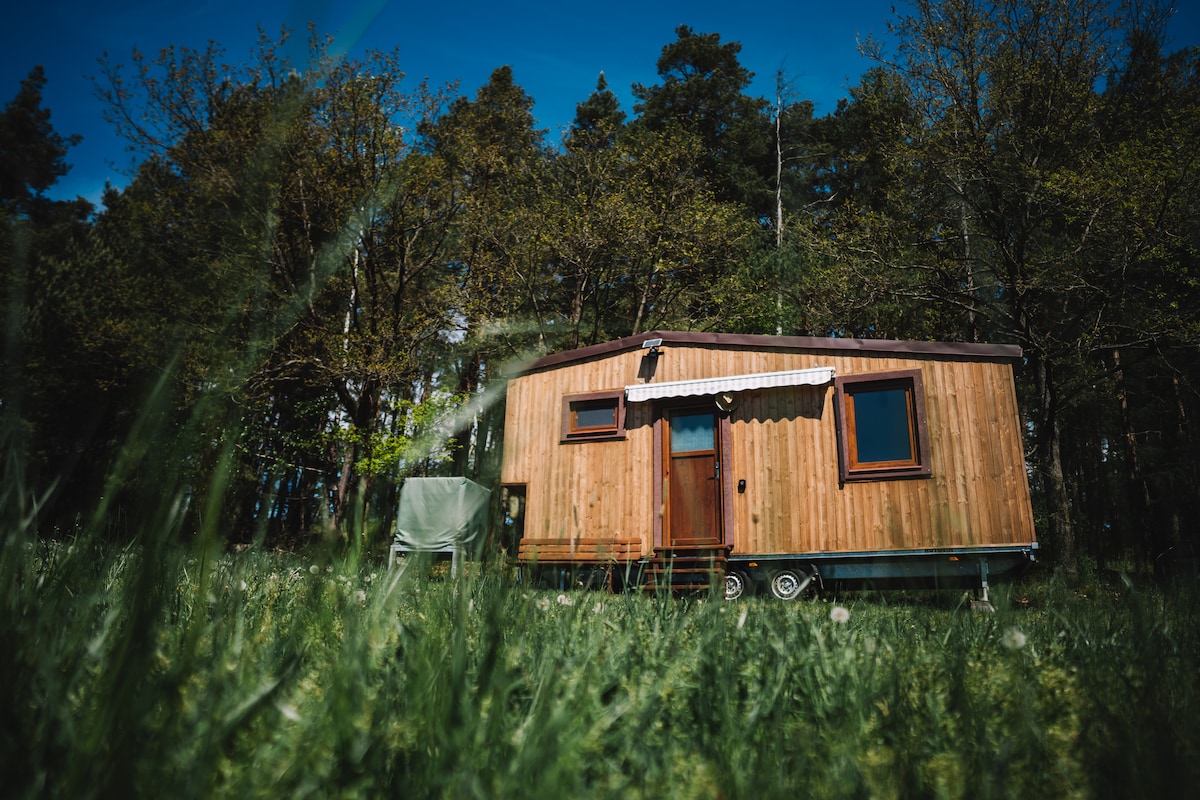 Smáhýsi Bizingroff - friður, náttúra og hönnun á einum stað. Ertu að leita að stað til að hægja á þér í smá tíma? Smáhýsið okkar er notalegt, nútímalegt hús í náttúrunni, umkringt skógum og tjörnum. Það bíður þín minimalískt en ígrundað innra rými ásamt heitum potti og gufubaði (gufubað fylgir ekki). Húsið er fyrir alla sem elska frið, náttúru og vilja njóta meira en bara nætursvefns. Það er upplifun þar sem þú hægir á, hleður batteríin og tekur með þér ógleymanlegar minningar.