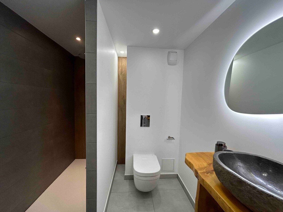 -Búið eldhús með öllum þægindum (eldun, ofn, ísskápur, uppþvottavél, Senseo, squeegee/fondue tæki...) - Baðherbergi er með vaski, sturtuklefa, upphengdu salerni og handklæðaþurrku - Handklæði og rúmföt tilbúin við komu þína. -Comfortable breytanlegur sófi sem gerir þér kleift að finna röðina þína á Netflix eða Amazon Prime reikningnum þínum Þú hefur verið varaður við því að þú verðir heima hjá þér. - Rólegt herbergi, til að njóta friðsælra nátta