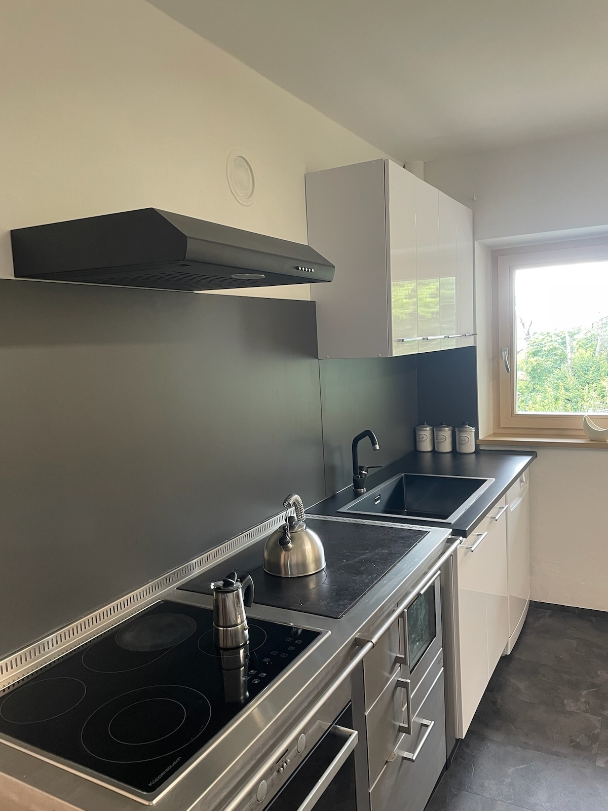 Glæsileg þakíbúð í nútímalegum alpastíl við Seefelder-hálendið. Notalega og hljóðláta íbúðin á síðustu hæðinni er hönnuð fyrir allt að fjóra einstaklinga. Hér er björt stofa og borðstofa með nútímalegu fullbúnu eldhúsi, tveimur tvöföldum svefnherbergjum, tveimur baðherbergjum, gólfhita, ókeypis þráðlausu neti og mjög stórri einkaverönd. Þaðan er magnað útsýni yfir fjöllin og Inn Valley, bæði á sumrin og á veturna.