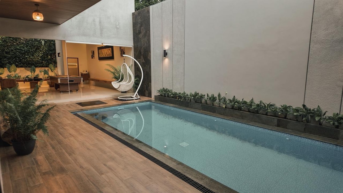 Bright, modern 2-bedroom villa in a peaceful rural setting near farms, with daytime temperatures between 17 °C and 26 °C, ideal for outdoors. Just 7 min from Park & Zoo Lembang and 15 km from Whoosh Padalarang station. Cosy stay with garden, patio, BBQ, free Wi-Fi, private parking, movie nights, and daily Asian breakfast. Smoke-free, newly renovated, perfect for unwinding or exploring attractions, your quiet home away from the hustle and bustle.