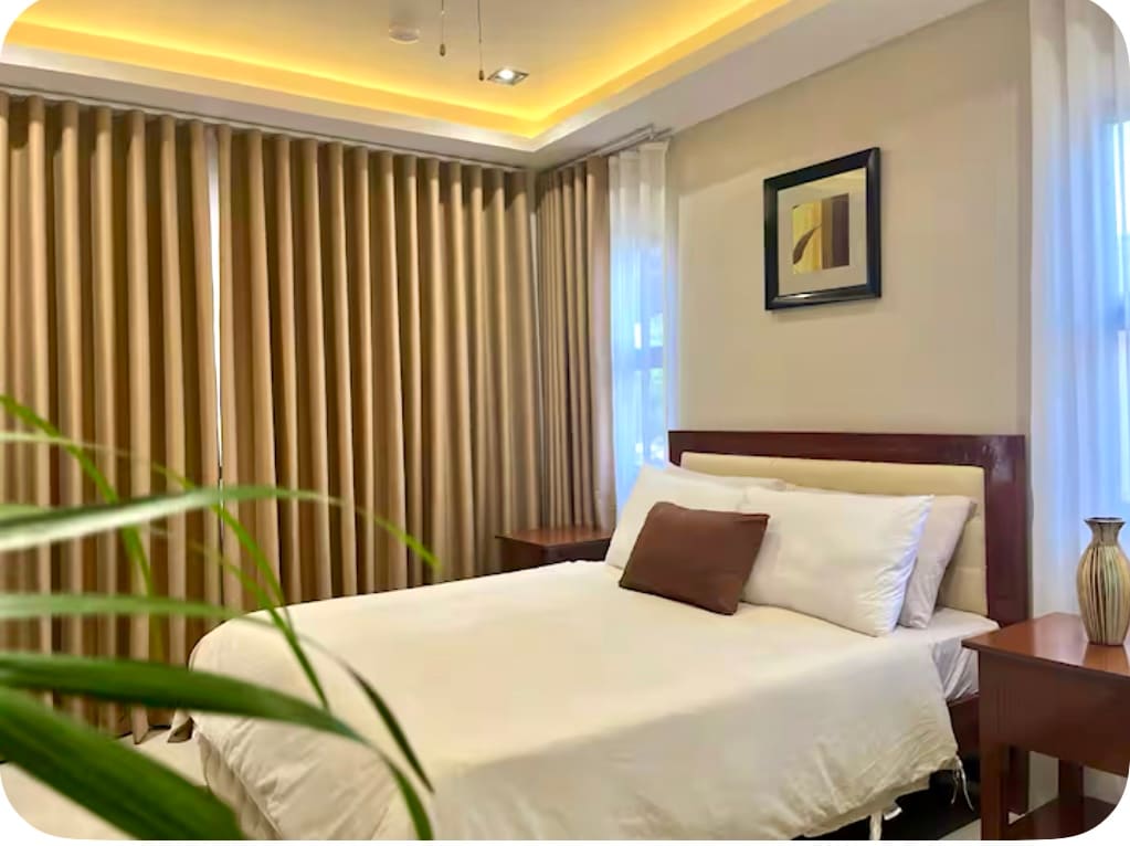 Verið velkomin í friðsæla fríið frá erilsömu borgarlífinu. Þessi notalega 30 fermetra svíta er aðeins í 45 mínútna fjarlægð frá Clark-flugvelli, í 15 mínútna fjarlægð frá ströndunum og í 5 mínútna fjarlægð frá Royal Duty Free og opnast út á verönd með útibaðkeri, grilli og borðstofu. EFTIRTEKTARVERÐIR EIGINLEIKAR: >Þægileg rúm > Útipottur >Heit sturta >Bakgarður fyrir gæludýr >Þráðlaust net >Grill >Úti að borða >Hengirúm >Eldhúskrókur > Þorp bak við hlið > Öryggi allan sólarhringinn >Air-Con >Gæludýravæn * >Viðbótargjöld eftir fyrstu 2 gestina *w/ feed user ini it