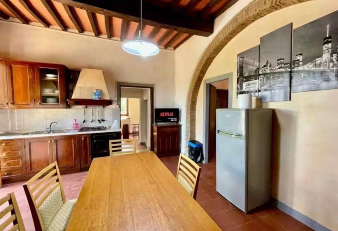 Íbúðin, sem er hluti af býli, er innréttuð í hefðbundnum stíl, algjörlega endurnýjuð, sem samanstendur af svefnherbergi, eldhúsi, baðherbergi og tvöföldum svefnsófa í eldhúsinu; hún er staðsett í miðri Toskana og er frábær upphafspunktur til að heimsækja svæðið; 20 mínútur frá San Gimignano og 35 mínútur frá Flórens. Hún hentar pari eða fjölskyldu með ung börn sem hafa lausn fyrir þriðja og fjórða einstaklinginn einn tvöfaldan svefnsófa.