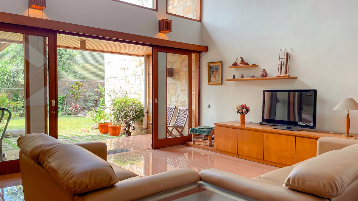 Rumah Westhoff er staðsett í miðju Bandung, í 5 mínútna fjarlægð frá Pasteur-hraðbrautinni. 15 mínútur alls staðar. Rúmgott hús með mikilli lofthæð, stórum og fallegum garði með 1/2 velli Körfuboltavelli fyrir allt að 15 GESTI (ekki fleiri en þetta). Queit hverfi. Við bjóðum upp á herbergi fyrir þernur eða ökumenn allt að 3ja manna og 3ja til 3ja manna aukarúm eru innifalin . Mini Bus eru leyfðar á svæðinu (aðeins smábíll eins og Hi-Ace). Við bjóðum upp á te og Nespresso kaffivél. 24 tíma öryggi, getur skipulagt allt að 7 bíla.