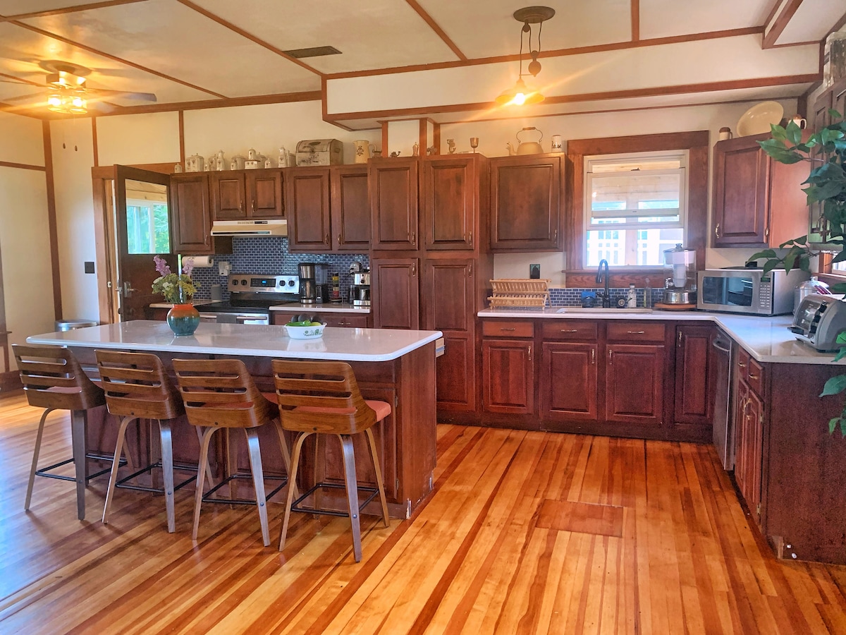Flýja til 5 svefnherbergi, 2,5 bað Catskills orlofshús á 2 hektara. Tilvalið fyrir stóra fjölskyldu eða nokkrar minni fjölskyldur sem ferðast saman. Heimilið er uppfullt af yfir 50 borðspilum, púslum, pílum, snjallsjónvarpi og Foosball. Njóttu útivistar með Ping Pong, Volleyball, ýmsum grasflöt leikjum, firepit, grill og fleira. Slakaðu á á einkalóðinni við Huntington-vatn í nágrenninu, í aðeins 7 mínútna göngufjarlægð frá húsinu með einkabryggju, hengirúmi, arni við vatnið, kajökum og róðrabrettum!
