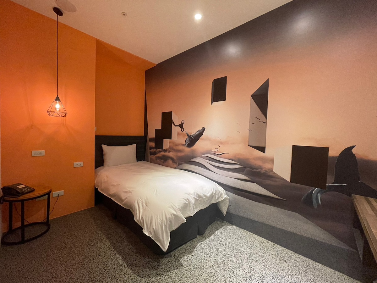 ~推薦~幻境鯨魚單人房/近超商/停車場/宮原眼科1分鐘/台中車站步行3分鐘