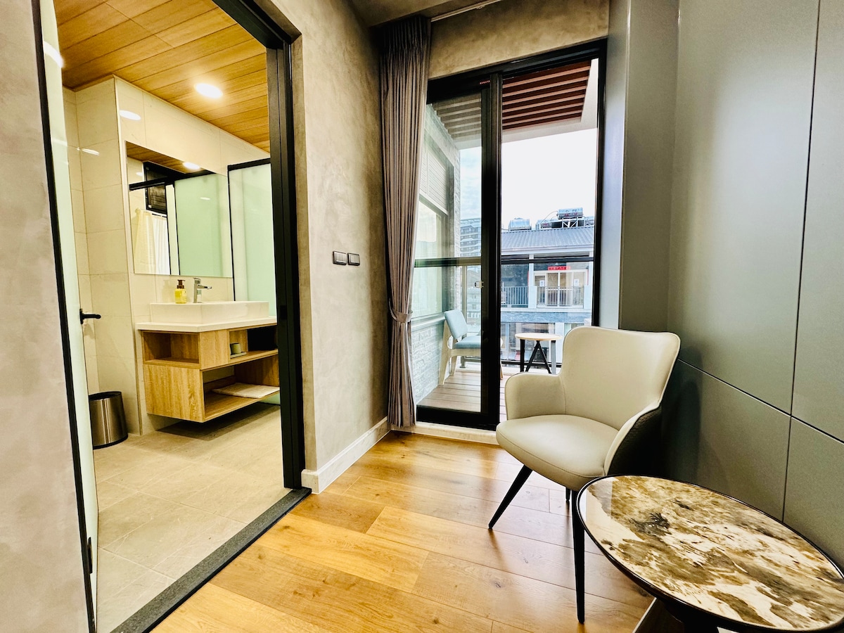 高樓市景大床房|新裝潢・靜謐好眠|近市中心文心中清站