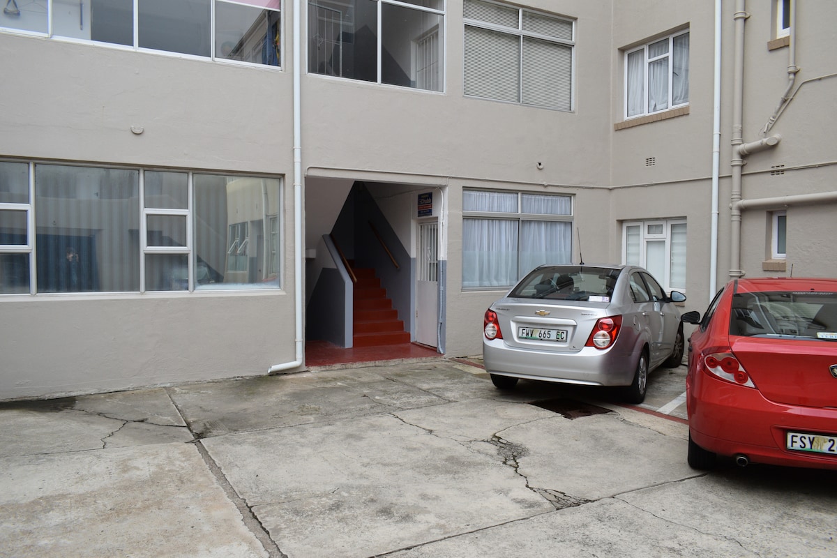 Upplifðu líflega staðbundna búsetu í nútíma íbúðinni okkar. Stutt í veitingastaði, verslanir og nýtískuleg kaffihús. Njóttu þessarar 1 svefnherbergis Executive íbúðar, með vel skipulögðum baðherbergjum, eldhúsi og rúmgóðum stofum. Vertu þægileg/ur með AC og hröðu þráðlausu neti. Hvíldu þig í friði með öruggum bílastæðum. Íbúðin okkar er með vararafhlöðu til að hlaða út, sem tryggir samfelld ljós, sjónvarp, þráðlaust net og rafmagn fyrir lítil raftæki. Upplifðu það besta sem Gqeberha hefur upp á að bjóða frá földum gimsteini okkar...