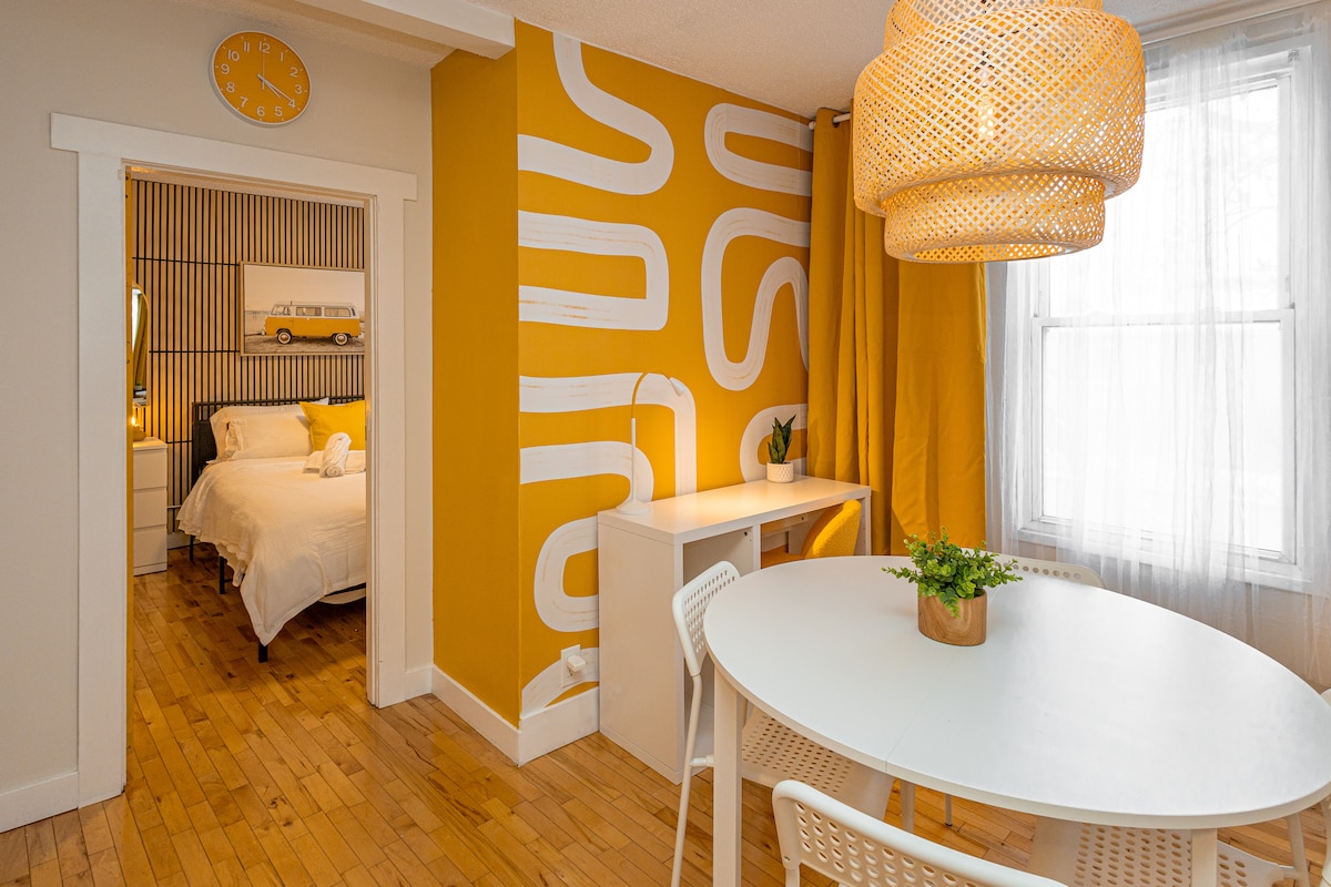 🌆 Gistu á vinsælasta svæði Calgary! Þessi notalega íbúð með 1 svefnherbergi í Kensington er steinsnar frá 🚆LRT, ☕kaffihúsum, 🍽️veitingastöðum og verslunum. Tilvalið fyrir pör, ferðalanga sem eru einir á ferð eða gesti í viðskiptaerindum. Njóttu þægilegs 🛏️ queen-rúms, fullbúins eldhúss 🍳 og 📶 ókeypis þráðlauss nets. Bókaðu í meira en 1 viku og fáðu 🅿️ ókeypis bílastæði! Kynnstu borginni með einföldum hætti og slakaðu á í stíl. Afdrepið í Calgary hefst hér.