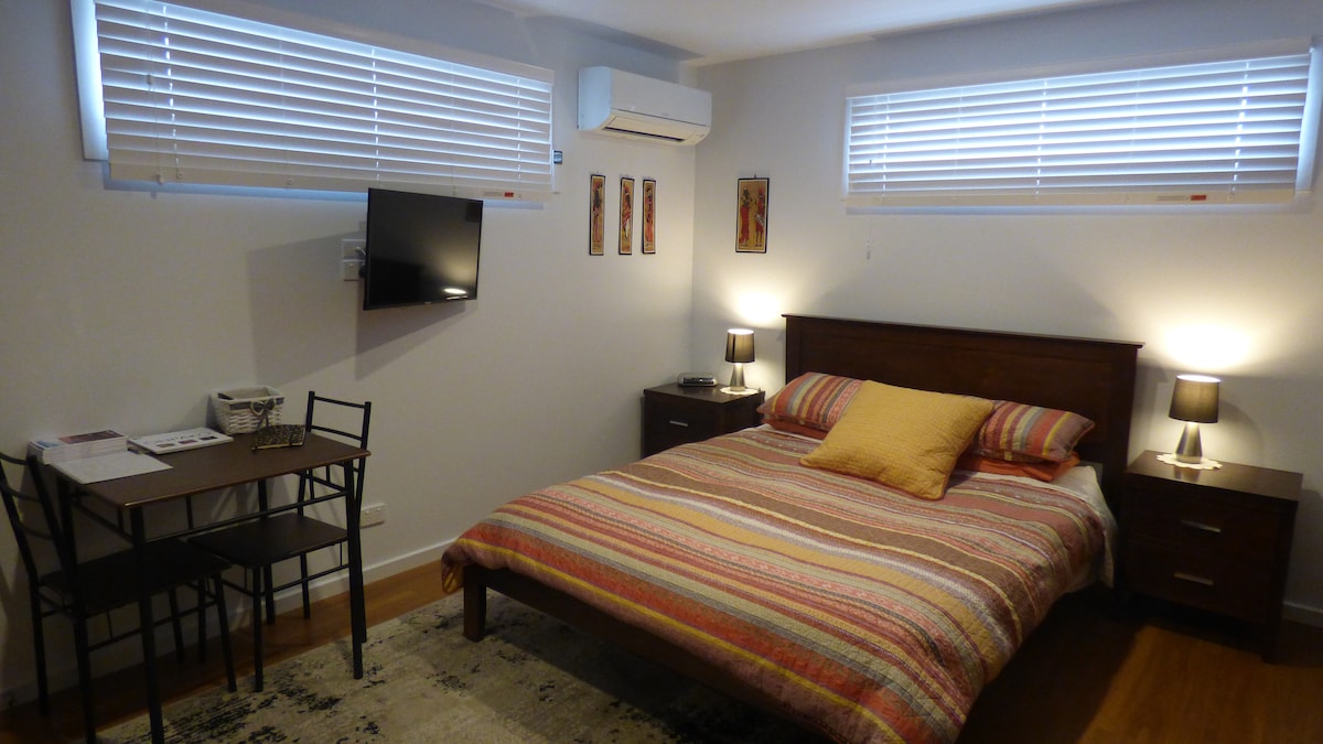 Njóttu einfalds, einkaherbergis með baði og sérinngangi, þægilegu hjónarúmi og ókeypis bílastæði í friðsæla Wandana Heights. Tilvalið fyrir heimsóknir á sjúkrahús, Deakin Uni ferðir, starfsmenn eða stutta millilendingu í Geelong. Boðið er upp á te og kaffi. Athugaðu að það er ekkert eldhús, kæliskápur eða örbylgjuofn. Hagnýt og hagkvæm upphafsstaður nálægt verslunum, rútum, Epworth, Deakin og brimströndinni.