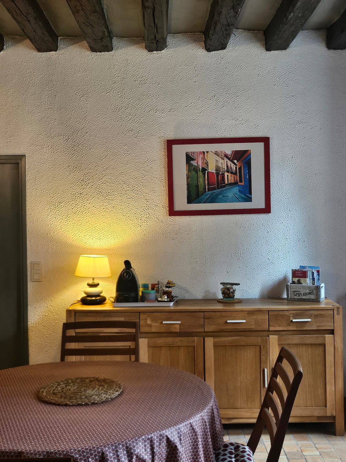 Pretty percheron half-timbered house, renovated from bottom to attic in 2010 with all the comforts, but keeping it all its soul. Staður þar sem öllum virðist líða vel, með daga í sólinni í stóra garðinum sem snýr í suður eða nálægt stóra arninum á veturna. Tvö notaleg svefnherbergi á 1. hæð (1 með hjónarúmi og 1 til 2 einbreið rúm) og á neðri hæðinni, eftir stóru stofunni/borðstofunni sem er 50 m2 að stærð, er lítið skrifborð með 1 einbreiðu rúmi og stórt eldhús með fullri birtu. Sjáumst fljótlega