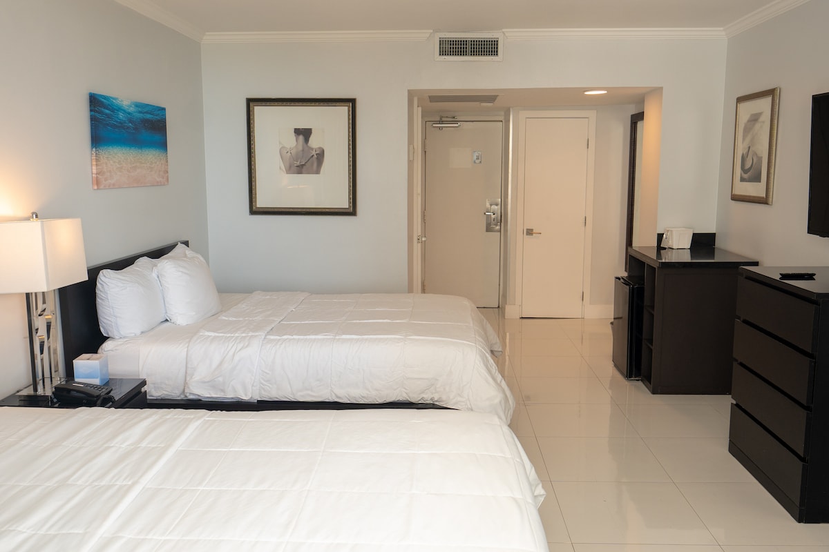 Welcome to your luxurious getaway! - Beautiful boutique hotel rooms with Egyptian cotton towels and sheets. - Clean, modern interiors ranging from Economy Queen to Deluxe Two-Bedroom Suites. - Huge flat-screen TVs, comfortable living areas, and full kitchens in all suites. - Serene sculpture garden and just moments from Fort Lauderdale's sands. - Free Wi-Fi, complimentary parking, and essential amenities for a homely feel.