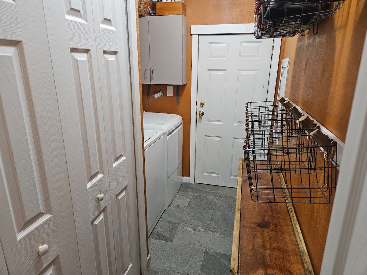 Escape to Timberline Ranch, a 30-acre horse farm near historic Smithfield. Horses and goats are visible from multiple windows. Your bedroom is cozy with room-darkening drapes, plenty of blankets and pillows. The kitchen is well stocked. Coffee station stocked and to-go cups. Bathroom has a ceiling heater, towel warmer, essentials. W/D with detergent. Step out to the front porch rocking chairs, fire pit (wood incl), and picnic table. Explore trails, follow the creek, and hunt for hidden gnomes.