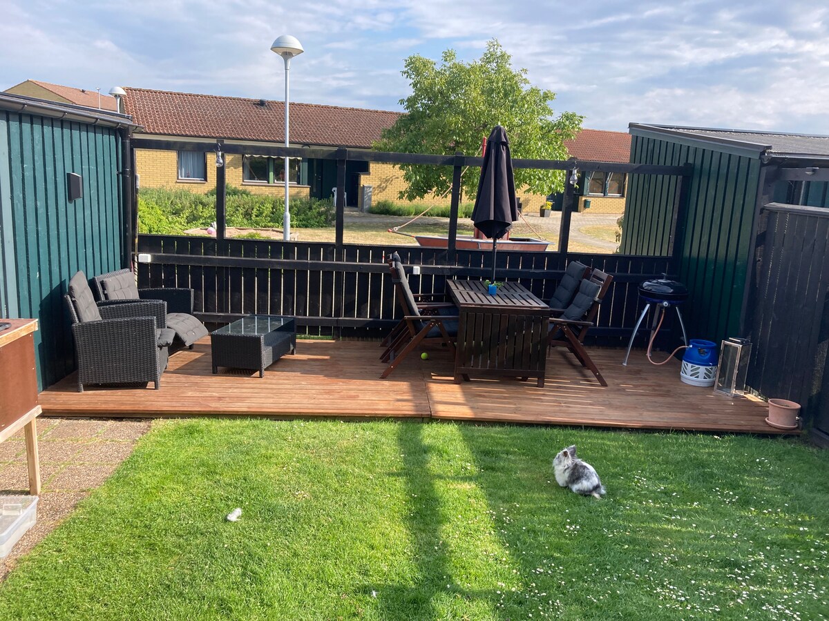 Vertu notaleg og friðsæl í gamalli hálftímalengd frá nítjándu öld. Staðsetningin er dreifbýli með dýrum og náttúrunni rétt fyrir utan dyrnar en á sama tíma nálægt borginni, veitingastöðum, skemmtun, verslunum og strönd/sundi. Hér býr rólegt og rúmgott um 120 m2 með 2 svefnherbergjum, eldhúsi, stórri stofu með sófa, sjónvarpi og borðstofu sem og baðherbergi með salerni, sturtu, þvottavél og þurrkara. Við hliðina á húsinu er gróðursæl, afskekkt verönd með grillgrilli við hliðina á beitilandi með sauðfé og hestum. Þú getur lagt bílnum rétt fyrir utan.
