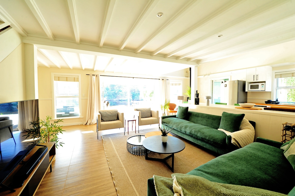 Situated in the mountains of Robertson, this double volume, beautifully restored Old School is a tranquil getaway for the whole family. There is a gorgeous eco pool and plenty of amenities for children. Located next to the Marloth Nature Reserve, the house is at the beginning of the Arangieskop Hiking Trail. Mountain biking, hiking, birding and river and dam access mean that there are plenty of outdoor activities for the whole family.