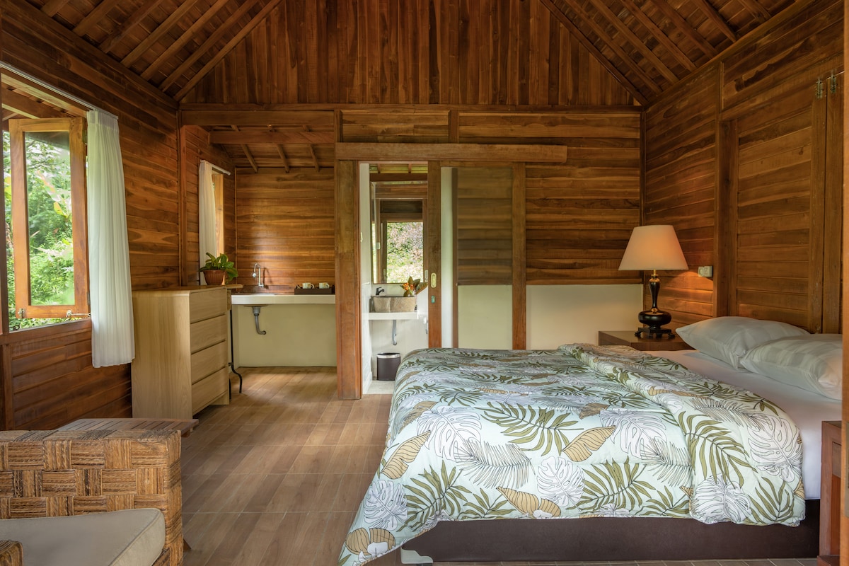 A Peaceful, Private Nature Emerson A beautiful self contained 2 level Cabin nestled next to the Batukaru Rainforest. The cabin has stunning views to the Rainforest with beautiful windows throughout to bring in the light & take in the views! Ideal for 1- 2 people, 2 extra people can sleep upstairs on day sofa beds. Take it easy at this unique and tranquil getaway or work remotely with wifi throughout the property. Great birdwatching with the rainforest 3 mins walk away.