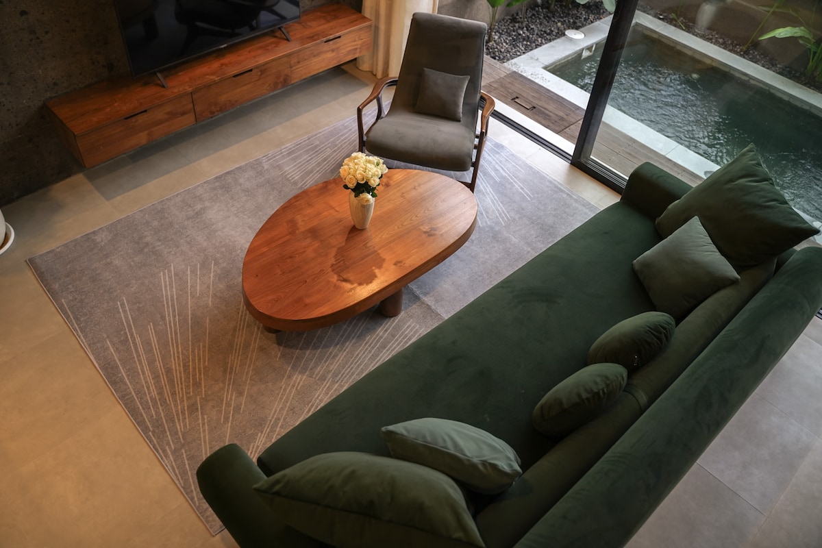 Stökktu í þessa mögnuðu tveggja svefnherbergja villu í Pererenan með endalausri sundlaug og afskekktri verönd við ána sem er fullkomin til að slaka á í náttúrunni. Hönnunin undir berum himni blandar saman nútímaþægindum og kyrrlátri fegurð Balí með rúmgóðum stofum, fullbúnu eldhúsi og gróskumiklum hitabeltisgörðum. Þetta friðsæla afdrep er í nokkurra mínútna fjarlægð frá Pererenan-strönd, kaffihúsum og veitingastöðum og innifelur hratt þráðlaust net, dagleg þrif og sannkallað hitabeltisfrí.