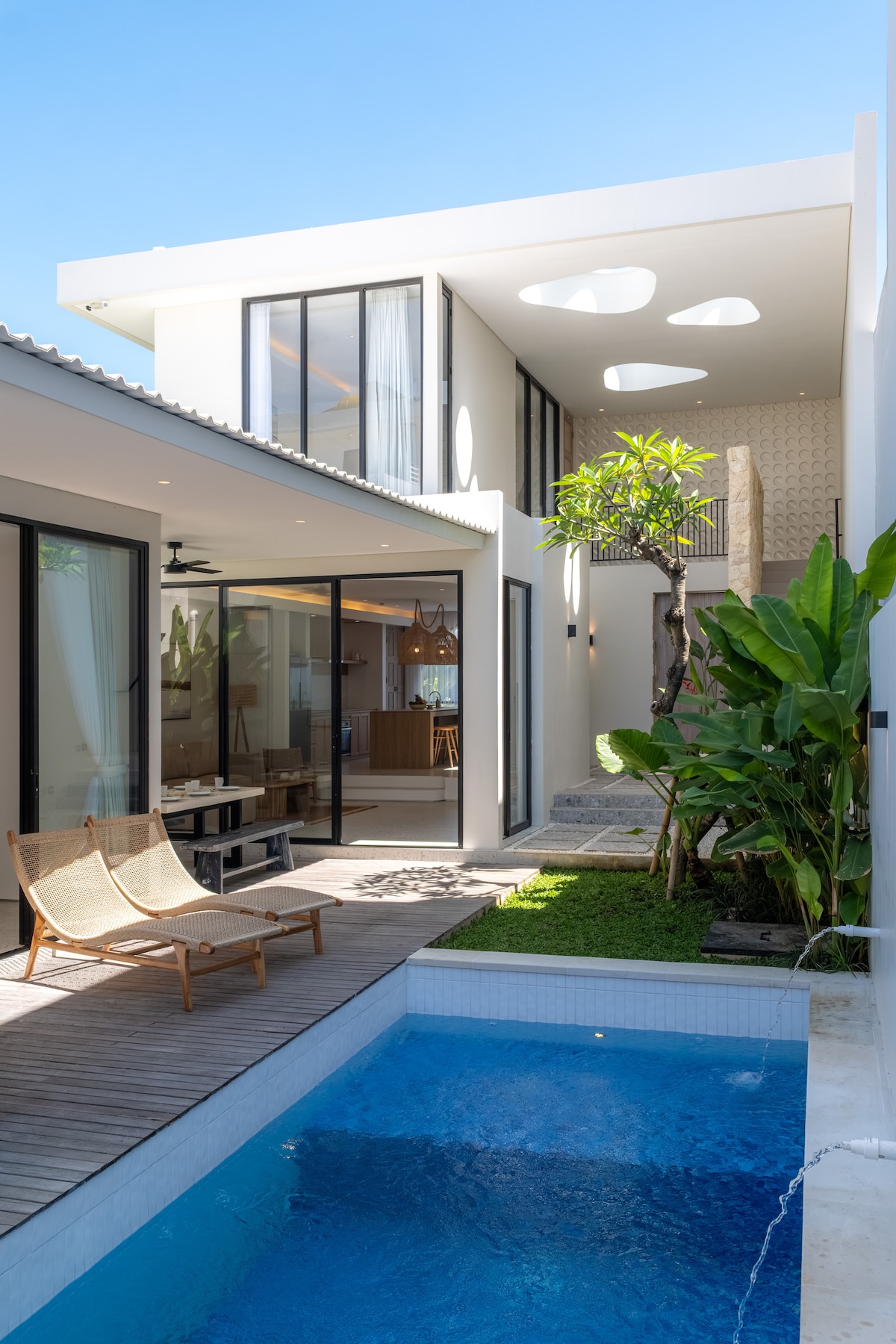 Stökktu til paradísar í The Villas Canggu, lúxusvininni þinni á Balí. Sökktu þér í kyrrðina í nútímaþægindum, hitabeltissjarma og aðdráttarafli líflegra kaffihúsa, stranda og næturlífs Canggu. Villan okkar er með einkasundlaug, í nokkurra mínútna fjarlægð frá spennunni, og býður upp á kyrrlátt frí fyrir pör eða fjölskyldur sem vilja njóta sín. Upplifðu fullkomna blöndu af afslöppun og ævintýrum á heillandi Babakan-svæðinu á Balí þar sem minningarnar endast.