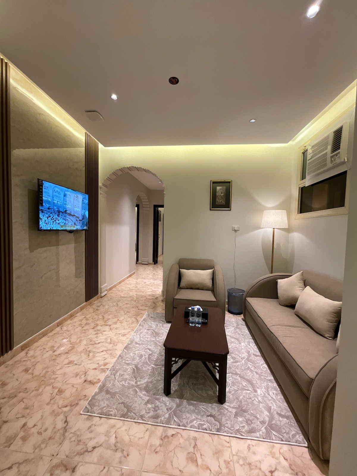 Verið velkomin í framúrskarandi gistingu 🤍 Við bjóðum þér lúxusíbúð með nútímalegri og glæsilegri hönnun sem sameinar fínan smekk og algjöra þægindi, á frábærri staðsetningu við líflega verslunargötu og eina af mikilvægustu götum Tabuk, með bílastæði fyrir framan íbúðina. Eignin er vandlega útbúin til að uppfylla ströngustu kröfur um gestrisni, þar á meðal: • 🛋️ Glæsileg og þægileg húsgögn með úthugsuðum smáatriðum • 📺 Snjallsjónvarp með áskrift að Shahid, Netflix og YouTube Premium • 🍽️ Fullbúið eldhús með öllum heimilistækjum og búnaði • 🧼 Mikil hreinlætisvörsla og gaum að smáatriðum Hvert atriði í íbúðinni er hannað til að veita þér tilfinningu fyrir lúxus og næði