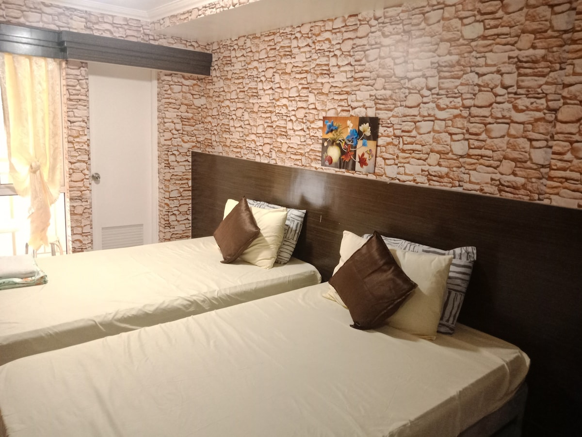Afslappandi herbergi með svölum til að gista á 21. hæð í Prime Residences Tagaytay með hinu þekkta Taal-útsýni að hluta. Herbergið er með rólegt andrúmsloft sem myndi hjálpa þér að slaka á og slaka á. Njóttu NETFLIX í 50 tommu sjónvarpi og 25mbps WIFI á meðan þú nýtur snarls eða sötra kaffi í köldum gola í Tagaytay. Staðurinn er nálægt veitingastöðum, skyndibitakeðjum og Starbucks-kaffihúsinu þar sem þú getur alltaf beðið um heimsendingu eða jafnvel gengið um.