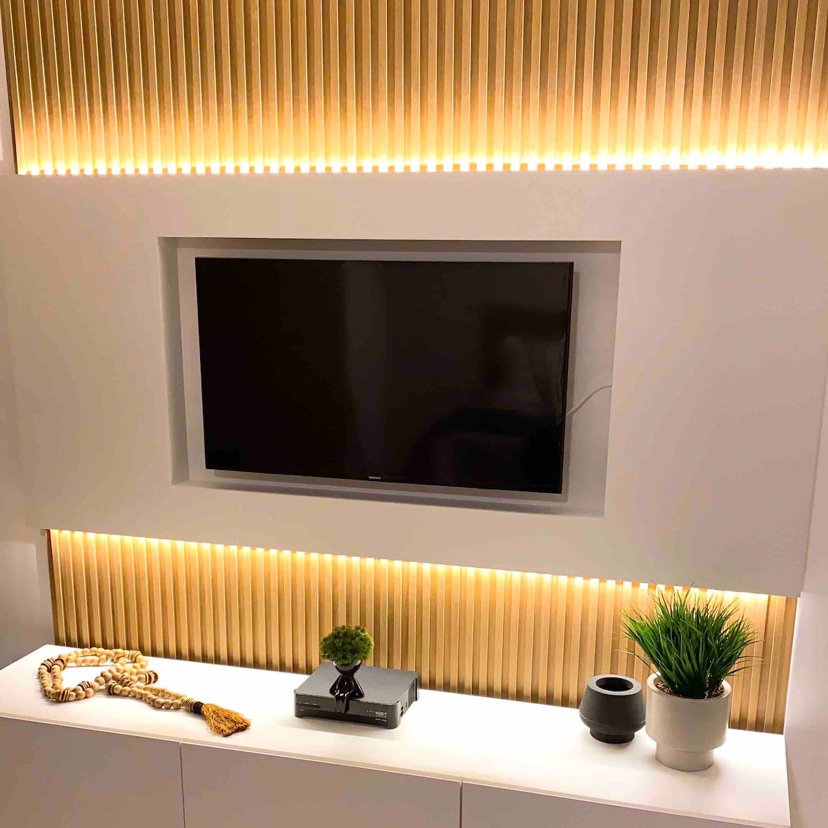 GISTING Í BORGARSTJÓRN MEÐ ÞÆGINDUM OG FÁGUN INNI Í VERSLUNARMIÐSTÖÐ Í TÆRU VATNI! Íbúð á 1. hæð, í háum gæðaflokki, skipulögð, innréttuð í hverju smáatriði, hljóðlát, búin nokkrum áhöldum, Queen-rúmi, 60 tommu sjónvarpi og svefnsófa. Þar ER BÍLSKÚRSPLÁSS. Fullkomið fyrir þá sem vilja þægindi, öryggi og þægindi. Tilvalið til að taka á móti allt að þremur einstaklingum.