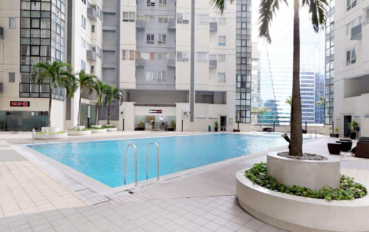 Nútímalegt heimili þitt í hjarta BGC Gistu í einum af nýjustu lúxusturnunum í Bonifacio Global City — Uptown Arts Residence, sem er staðsett beint á móti Uptown Mall og Mitsukoshi-verslunarmiðstöðinni, steinsnar frá veitingastöðum, verslunum, næturlífi og úrvalsviðskiptamiðstöðvum. Fullkomið fyrir gistingu, viðskiptaferðir og stuttar ferðir: Þægilegt rúm í queen-stærð Snjallsjónvarp Háhraða þráðlaust net Fullbúið eldhús Baðherbergi með heitri og kaldri sturtu Þvottavél/þurrkari Lykillaust aðgengi