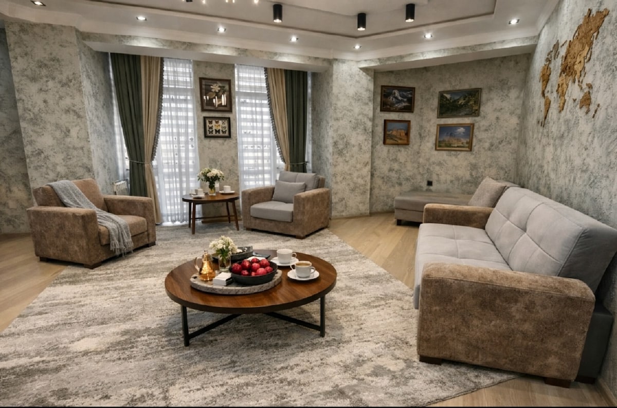 Njóttu dvalarinnar í hjarta Dushanbe, steinsnar frá áhugaverðum stöðum og kaffihúsum. Íbúðin er innréttuð í boho stíl með smá Tajik þjóðlegum litum og sjarma. Til hægðarauka og vellíðunar höfum við sett upp síunarkerfi á mörgum stigum. Njóttu ferskleika Tajik vatnsins beint úr krananum. Við bjóðum þér hjartanlega að dvelja á heimili okkar.