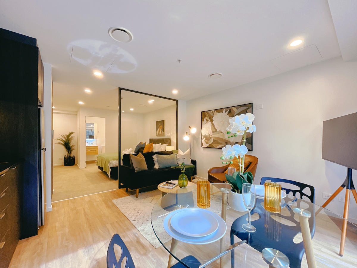 Central location Parkview & Relaxing studio. Njóttu dvalarinnar með aðgangi að innilíkamsræktarstöð og útisundlaug þar sem þú gætir notið ótrúlegs útsýnis yfir SkyTower og almenningsgarðinn. Mjög þægilegt rúm í queen-stærð, opin borðstofa og stofa, tvöfaldur gluggi frá gólfi til lofts gefur friðsælan trjáskugga. Fullkomlega virkt eldhús og þvottahús, ótakmarkað þráðlaust net með trefjum, snjallsjónvarp, hágæða rúmföt og handklæði. Auðvelt að ganga að Skytower, ferju, lestarstöð, háskóla, Bar & Restaurant.