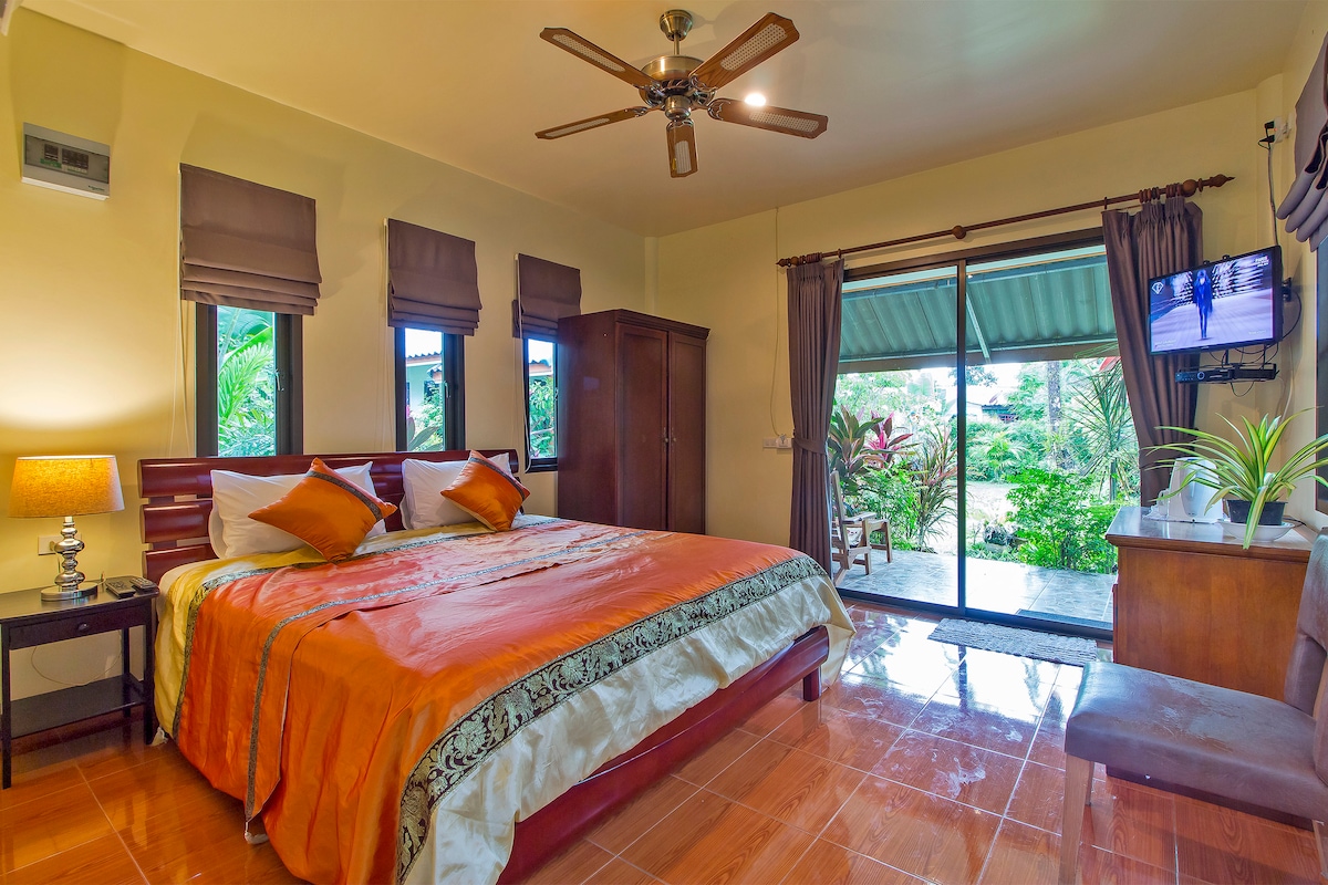 Eitt af fjórum, hreinum og rúmgóðum litlum einbýlum með king-rúmi og rúmgóðu baðherbergi með heitri sturtuaðstöðu. Öll herbergin eru með loftkælingu, lítinn ísskáp, þráðlaust net, sloppa og öryggishólf. Við erum með gestaeldhús, æfingaherbergi og þurra sánu. Það eru nokkrir veitingastaðir í göngufæri, litlu íbúðarhúsin eru á móti hinum heimsþekktu Rawai Muay Thai Camp og nokkrir taílenskir nuddstaðir eru í göngufæri. Það eru margar strendur í um 7 mínútna akstursfjarlægð.