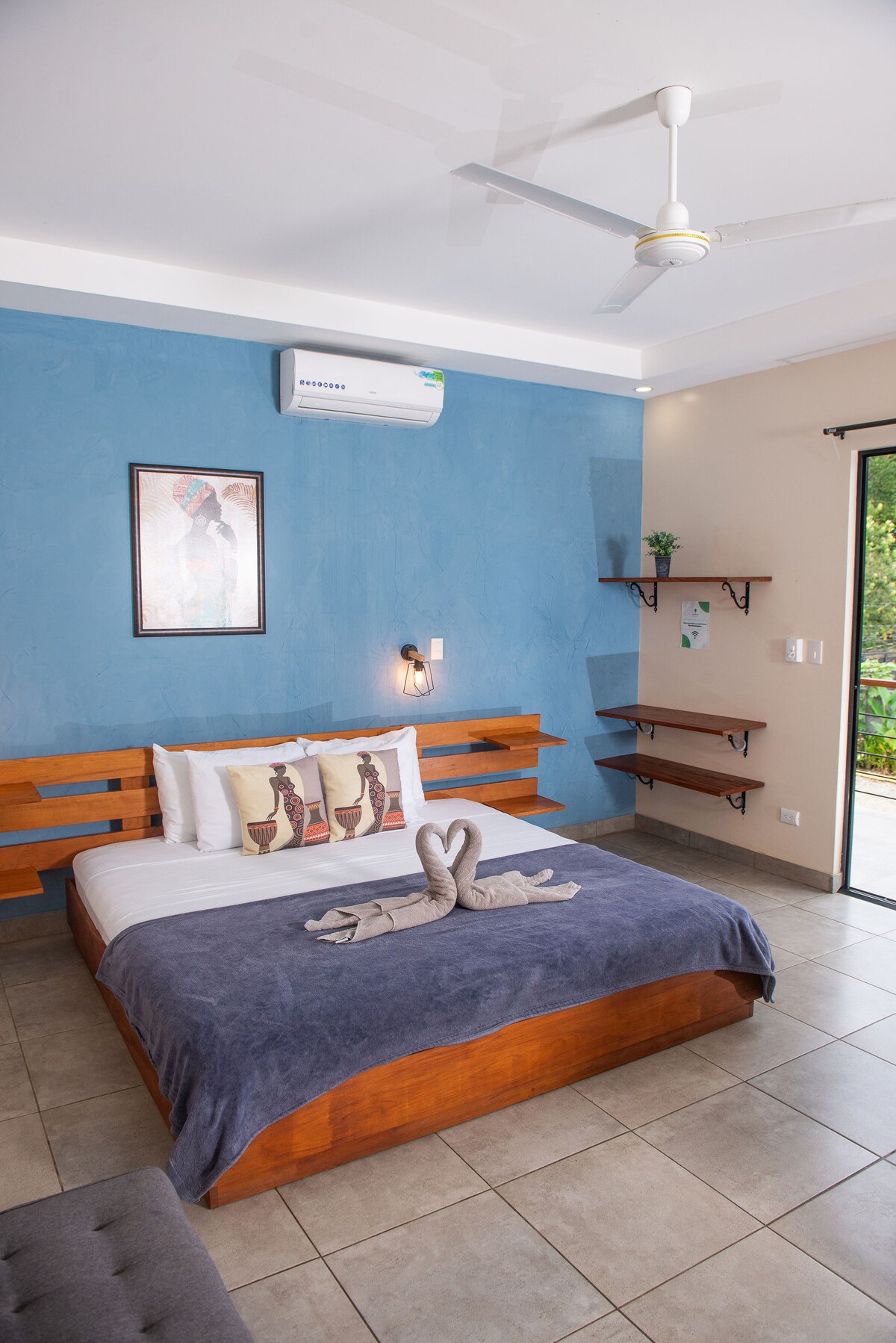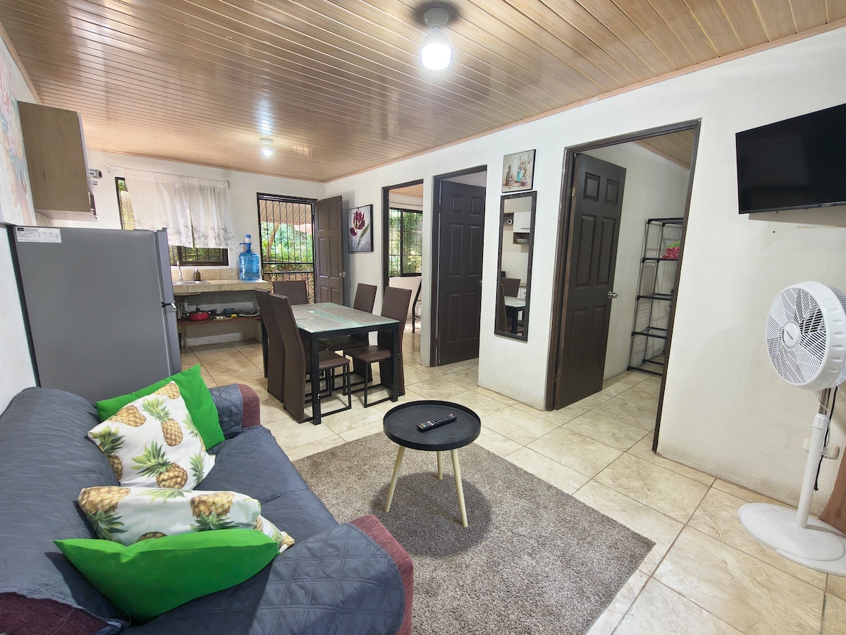 Herbergið er með queen-rúm, loftkælingu, sjónvarp með eldpinna til að fá aðgang að streymisþjónustu með eigin aðgangi (engin sjónvarpssnúra) og sérbaðherbergi. Í litla einkaeldhúsinu er allt sem þú þarft fyrir einfaldar máltíðir. Staðsett á lítilli strönd, fyrir framan aðalveginn, 300 metrum frá ströndinni og stórmarkaðnum, 4 km frá miðbæ Puerto Viejo og 2 km frá Punta Uva. Einkabílastæði eru í boði. Stoltur Kosta Ríka🇨🇷
