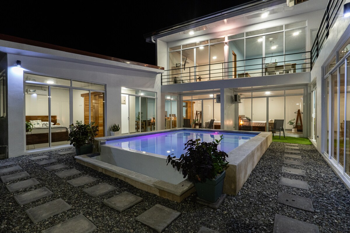 Þessi einkaafgirta eign í Playa Negra Heights nær yfir 2.000 fermetra og er með útsýni yfir skóginn og dýralíf. Það er staðsett í 300 metra fjarlægð frá Playa Negra-ströndinni og í 1,6 km fjarlægð frá miðbænum. Næsti veitingastaður og stórmarkaður eru einnig í aðeins 300 metra fjarlægð. Í eigninni eru tvö hús og íbúð í tvíbýli með heillandi inngangi með pálmatrjám og blómum. Vinsamlegast lestu allar viðbótarreglur áður en þú gengur frá bókun. Takk fyrir!