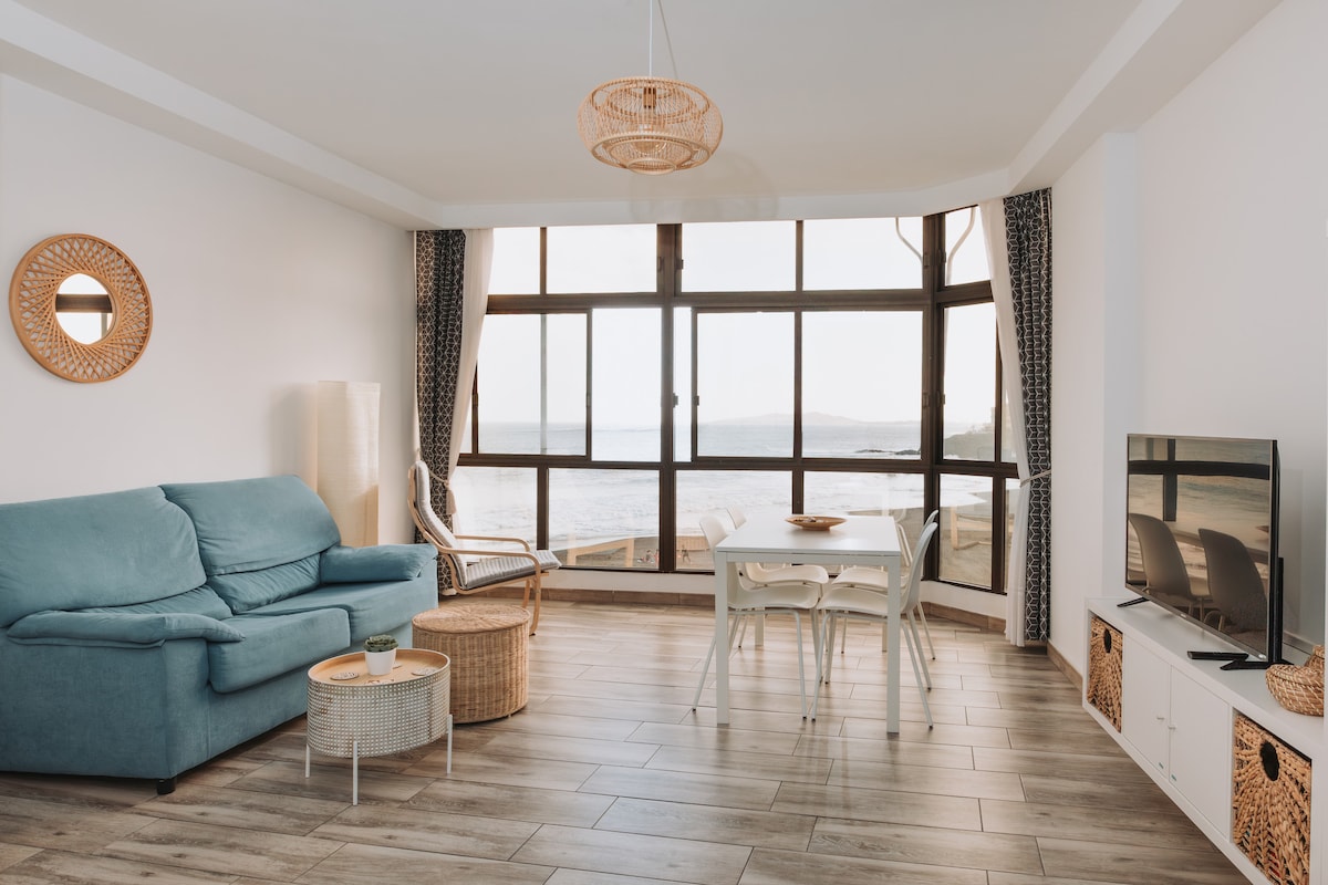 VV-35-1-0019782 *Las fotos de las vistas, son tomadas en su mayoría por los huéspedes desde el apartamento. SON VISTAS REALES .Vídeos en: I.G.:#canarias.seaview Este pequeño y acogedor apartamento reformado, está en 1º línea de mar (paseo marítimo). CONTEMPLAR EL AMANECER, oír el SONIDO DE LAS OLAS y OLER LA MARISMA, son algunos de los privilegios de este alojamiento. Está ubicado en un lugar único de la costa, a escasos metros del agua, en una zona de arena dorada, negra (volcánica) y piedras.