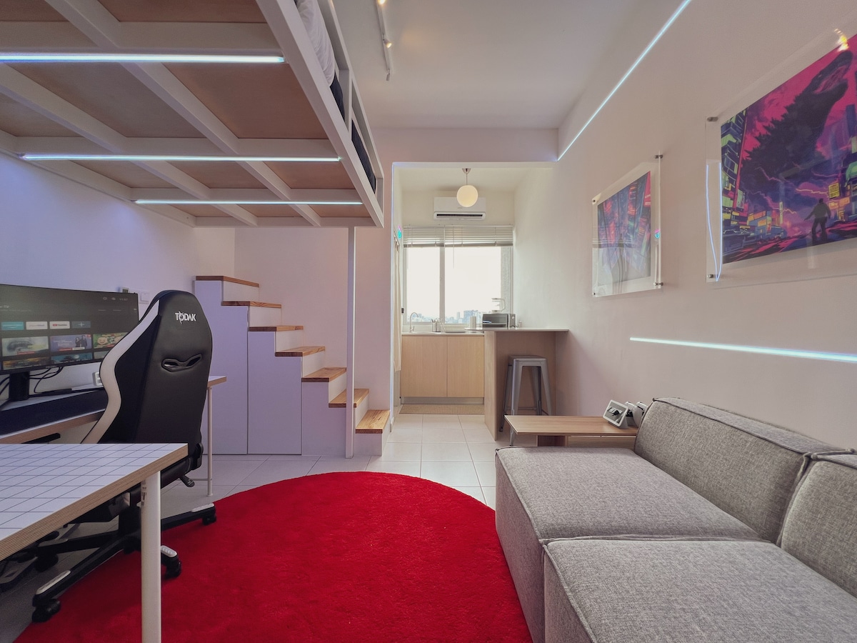 Þetta stúdíó með cyberpunk-innblæstri og loftrúmi býður upp á einstaka upplifun. Sérstök skrifborð, vinnuvistfræðilegur stóll og hratt net (250-300 Mb/s) – fullkomið fyrir stafræna hirðingja. Sameiginleg aðstaða felur í sér sundlaug, gufubað, líkamsrækt og matvöruverslun. Við hliðina á lestarstöð: beinn aðgangur að LRT Salak Selatan stöðinni. Hægt að ganga að KTM Salak Selatan stöðinni. Fjölbreytt samfélag heimamanna og útlendinga með mat og þægindi á viðráðanlegu verði en eru samt nálægt miðborg KL.