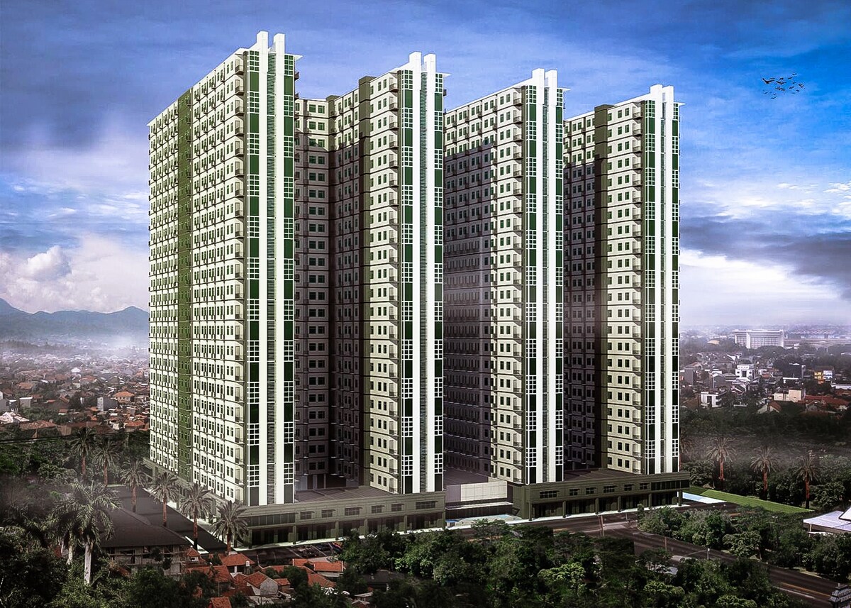 Sökktu þér í líflegt hjarta Bandung í þessu glæsilega stúdíói á 10. hæð í Parahyangan Residences. Njóttu nútímaþæginda á borð við fullbúið eldhús, háhraða þráðlaust net og 50" snjallsjónvarp með Netflix. Njóttu aðstöðu fyrir dvalarstaði, snertilausa innritun og þægindi í nágrenninu fyrir fullkomna dvöl, frí eða vinnu; upplifun utan heimilis. Nú með umbreyttu drykkjarvatni, förgun matarleifa og nýrri þvottavél.
