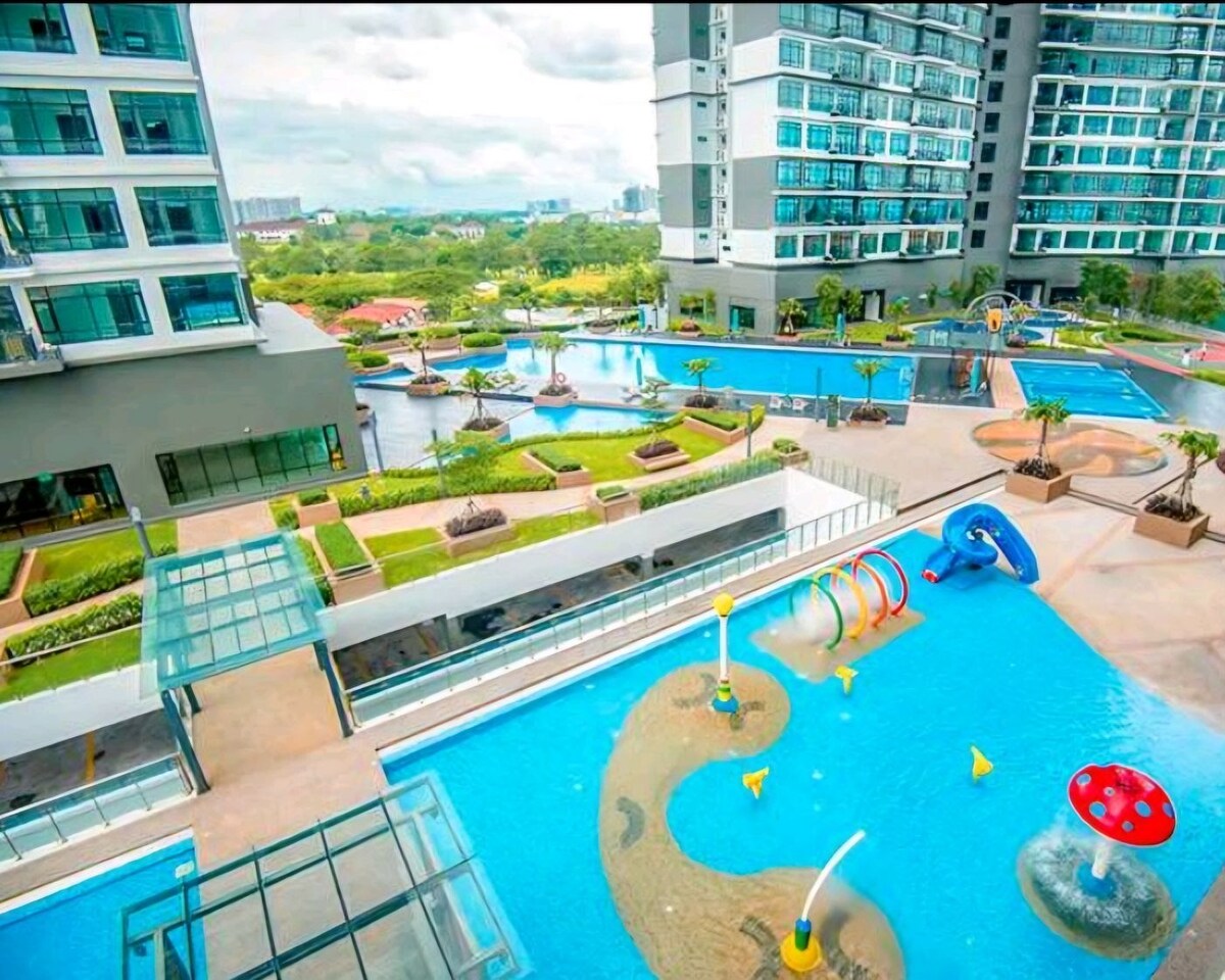 This is a spacious 2Bedroom unit perfectly fit for guests up to 5 pax with total of 1 king size bed 1 queen size bed 1 single bed High floor with high view. 1. Basketball Court 1. Gym Room 2. Function Hall 3. Lounge 4. Library 5. Manicure Shop 6. Mini Theatre 7. BBQ Deck 8. Swimming Pool 9. Sauna 10. Jacuzzi 11. Game room (Pool Table, PS Room, Darts and more) 12. Laundry 13. Mini Market -Sky Garden Guest are not allow to smoke in the room , please smoke at the balcony if needed