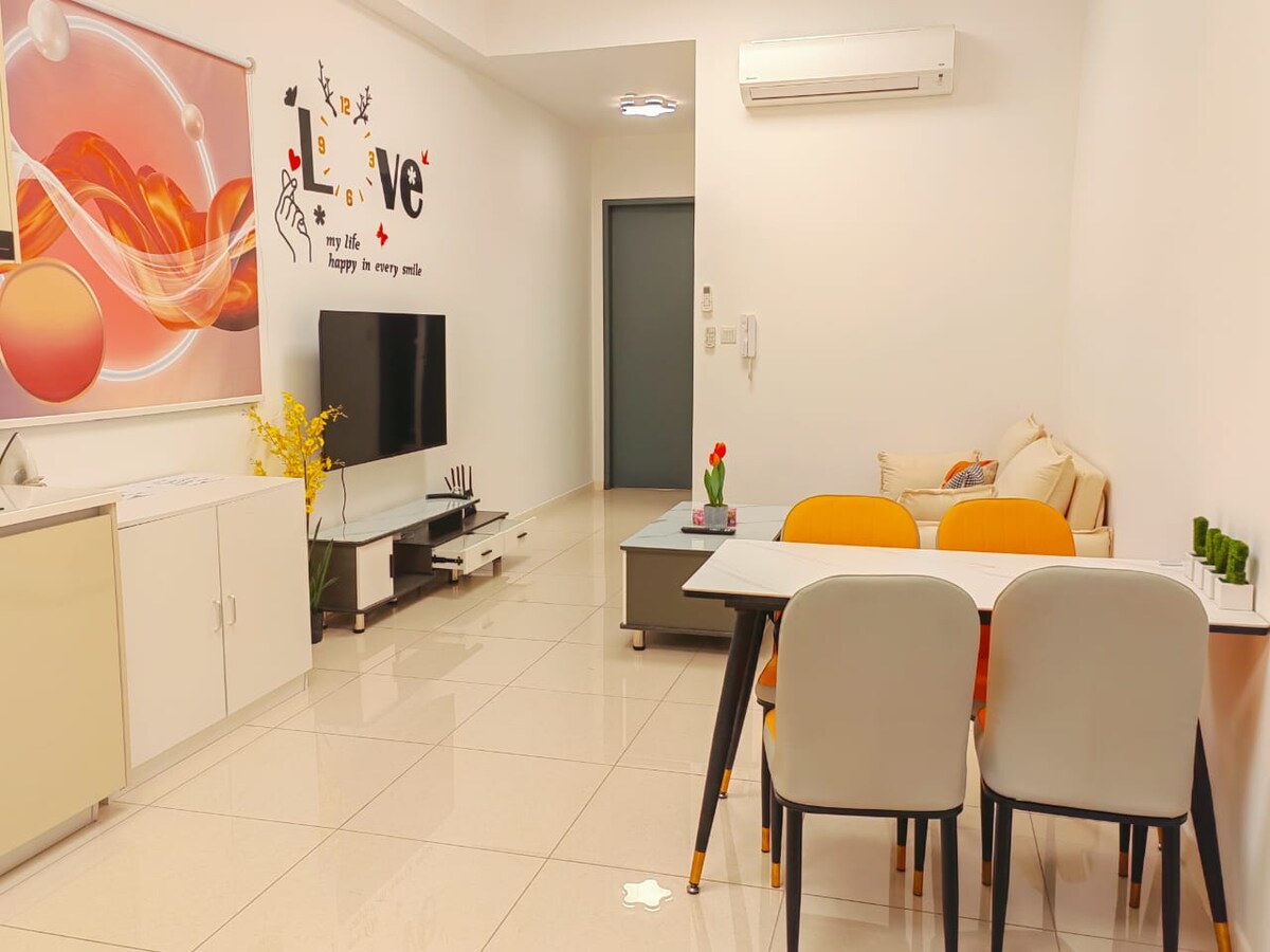 Gaman að fá þig í Nest Getaway - það gleður okkur að vera gestgjafar þínir! Heillandi „hreiðrið“ okkar er þægilega staðsett í Skudai og býður upp á beinan aðgang að Paradigm Mall. Notalega afdrepið okkar er fullkomið til að taka á móti 5-6 paxum. Innanrýmið er með innréttingu sem er algjörlega IG-verðug. Við höfum látið fylgja með vel úthugsað safn af borðspilum og spilum til að tryggja að þú skemmtir þér vel með ástvinum þínum. Við hlökkum til að gera dvöl þína eftirminnilega!