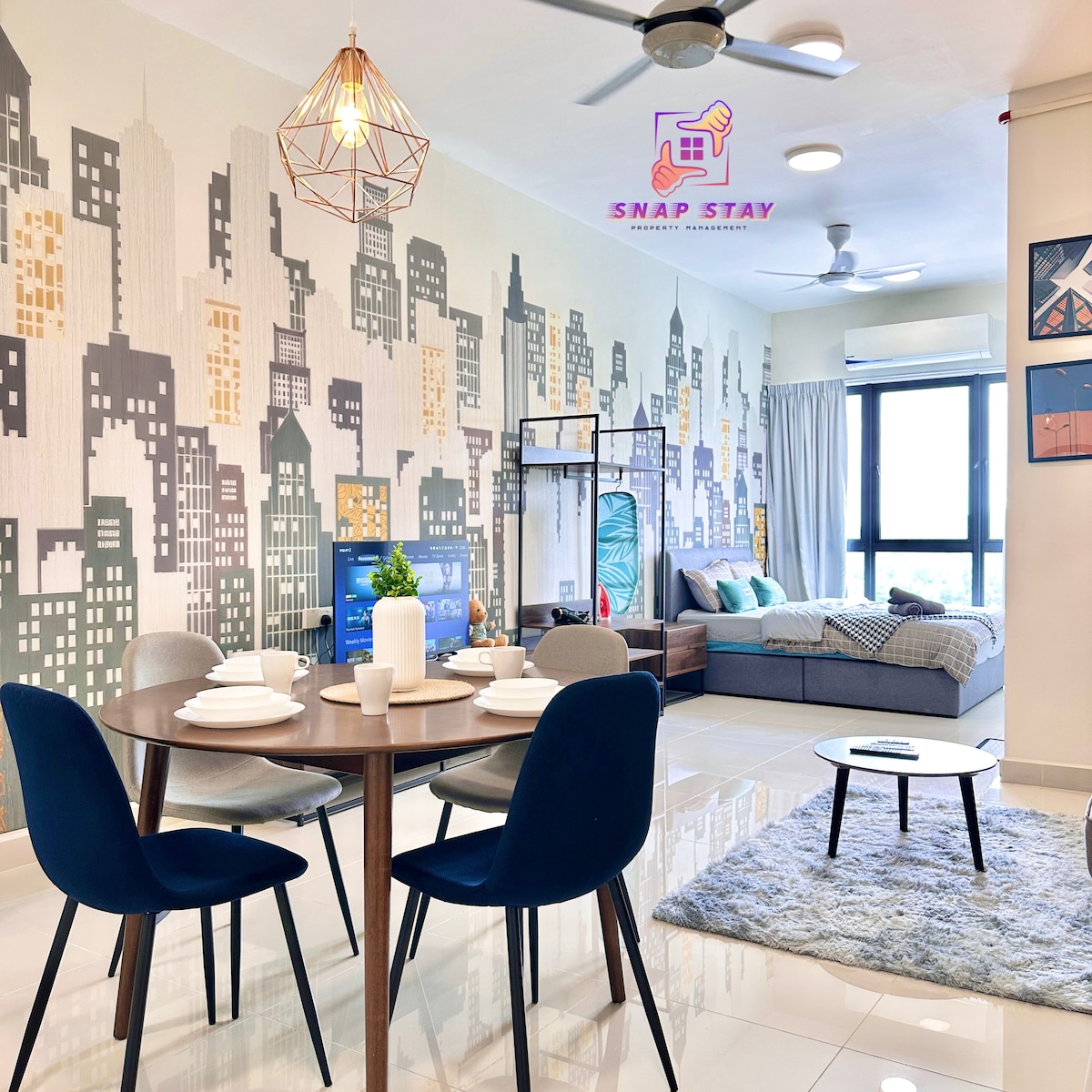 Lóðin mín á horninu er 333 fermetra stúdíóíbúð við 12. flr með fallegu útsýni yfir sundlaugina og tilkomumiklu útsýni yfir Cyberjaya-sjóndeildarhringinn. Íbúðin er í nokkurra skrefa fjarlægð frá Gem In Mall, Tamarind Square (BookXcess, Village Grocer), DPULZE Shopping Centre (Jaya Foodcer), Shaftsbury Square og mMU. Vertu eins og heima hjá þér með öllum nauðsynjum, 3ja sæta svefnsófa, 500 Mb/s INTERNETI, snjallsjónvarpi með gervihnattarásum, 11tommu þykkri dýnu og myrkvunargardínum til að hjálpa þér að sofa betur!