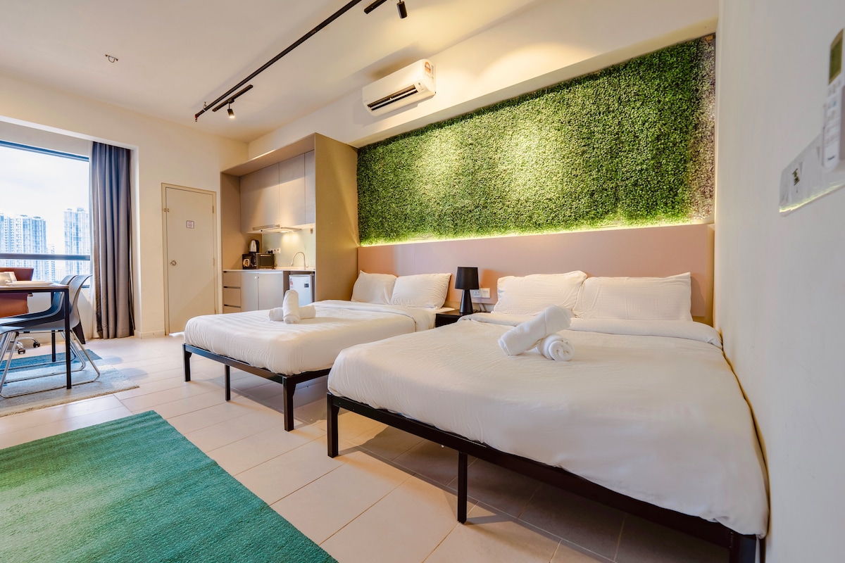 Sérstök eining í Solstice @Cyberjaya. Ótrúlega notalegt heimili mun örugglega láta þér líða eins og heima hjá þér á meðan þú ert í burtu með aðstöðu í dvalarstaðnum - risastórar sundlaugar og líkamsræktarsalur. Nice 450sf af eigin persónulegri svítu, með 1 svefnherbergi og 1 baðherbergi, heill með öllum daglegum búnaði og áhöldum fyrir þig til að vinda niður á þægilegu rúmi, slaka á meðan þú horfir á sjónvarpið (sjónvarpskassi með mörgum rásum) og brimbrettabrun og einnig ef þú vilt gera létta eldamennsku. Gríptu eða FoodPanda í boði líka til að fullnægja löngunum þínum
