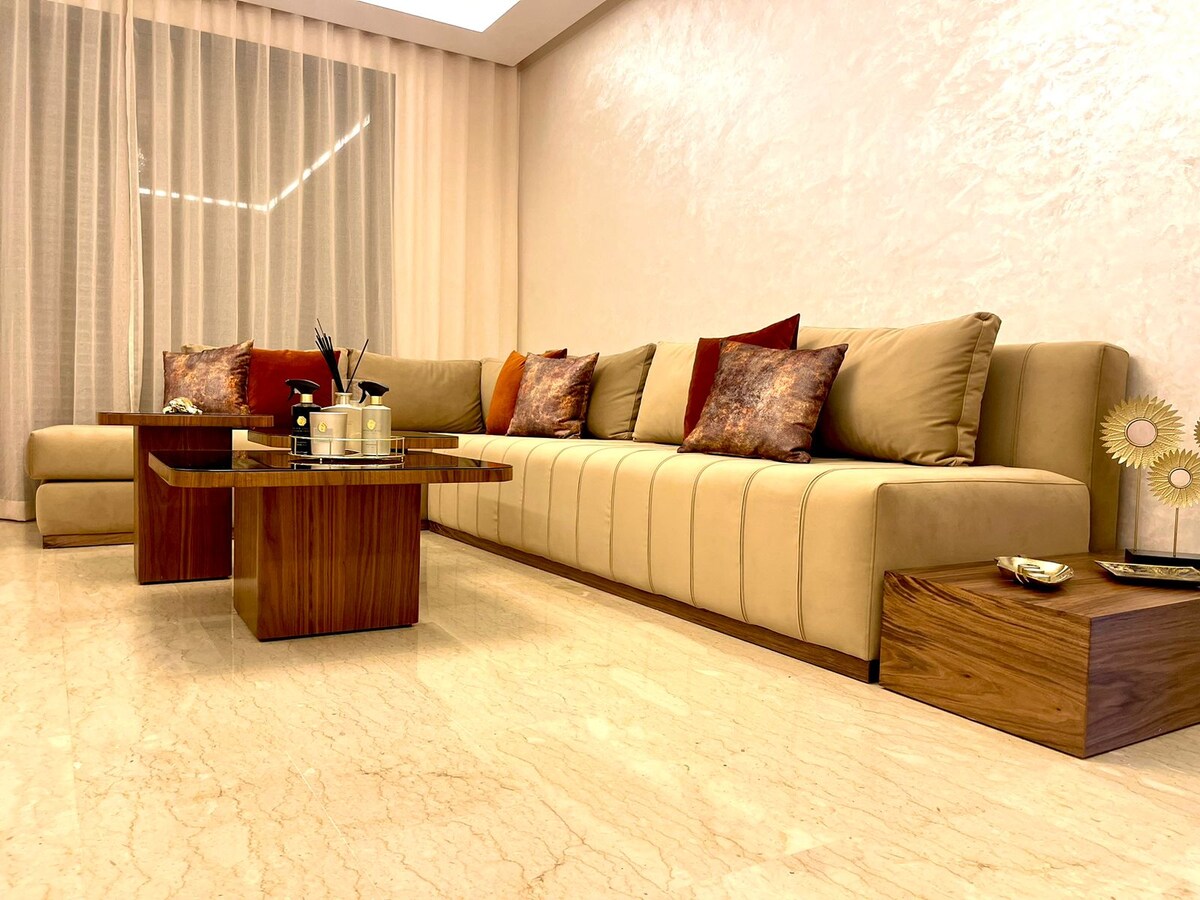 Njóttu stílhreinnar gistiaðstöðu sem er hönnuð af einum af bestu kostunum í Casablanca. Búseta í stíl við hótel, með sólarhringsvöktun, þvottaþjónustu, líkamsræktarsal á veröndinni, mjög háhraða interneti o.s.frv. Hvort sem þú ert að heimsækja Casablanca í viðskiptaerindum eða frístundum mun þessi staður gera dvöl þína skemmtilega. Staðsett í hjarta Casablanca, það er nálægt öllum þægindum ( garður, veitingastaðir, verslanir, minnisvarðar )