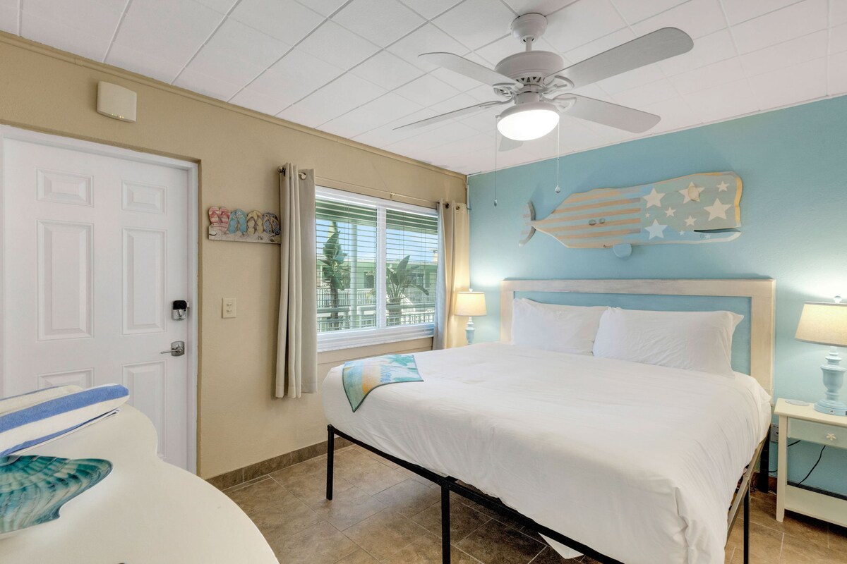 Tropic Terrace Suite #49 — Renovated Studio with Pool View & Sunset Balcony Sundlaug sem snýr að þér | Svíta á 2. hæð | Engin lyfta Verið velkomin í Suite #49 á Tropic Terrace Resort — fulluppgert stúdíó á annarri hæð sem blandar saman nútímaþægindum og sjarma við ströndina. Þessi 265 fermetra eining er staðsett á friðsælu Treasure Island og rúmar 3 manns og býður upp á fullkomið frí fyrir pör eða litlar fjölskyldur sem vilja hvíld, afþreyingu og ógleymanlegt sólsetur.
