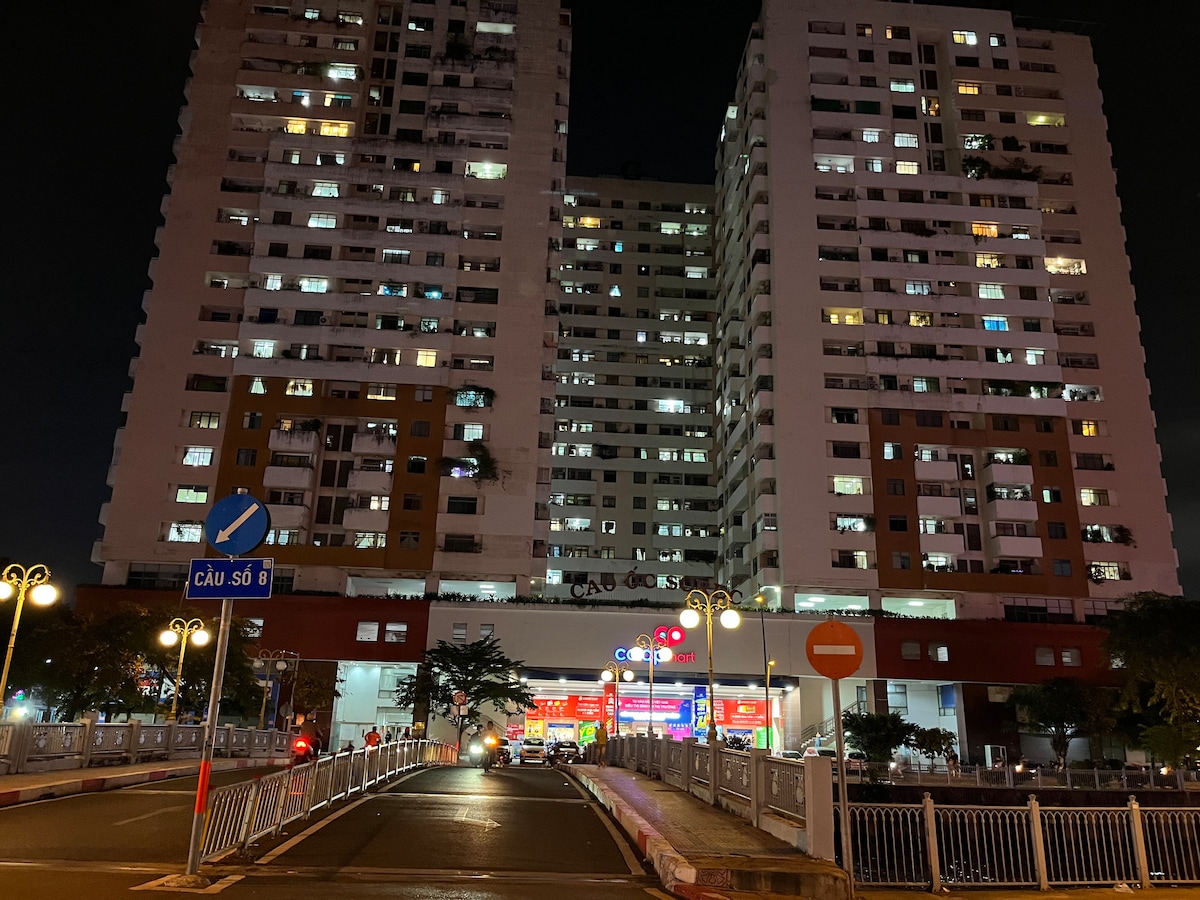 Íbúðin er staðsett í Tower A í Screc Tower Apartment Building, sem er mjög miðlæg staðsetning, staðsett á Truong Sa Street, fyrir framan Nhieu Loc-Thi Canal með mjög fallegt og ljóðrænt landslag. Frá íbúðinni er auðvelt að komast á helgimynda staði Ho Chi Minh borgar, það tekur aðeins 5-10 mínútur að komast í miðbæ 1. hverfis, 3. hverfis, 10. hverfis, Phu Nhuan hverfisins, flugvallarins... Í kringum íbúðabygginguna eru veitingastaðir, kaffihús og sérstaklega Coopmart matvöruverslunin staðsett á jarðhæðinni, sem gerir það auðvelt og þægilegt fyrir þig að versla.