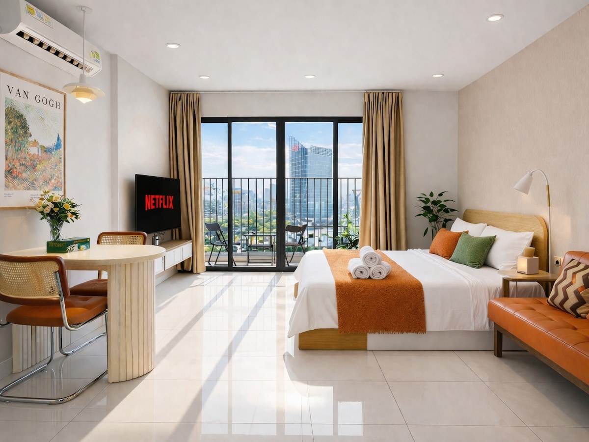 Notalega stúdíóið okkar á svölum í Lavida Plus er vel búið öllu sem þarf til að njóta þægilegrar LANGVARANDI DVÖLU 🌟, allt frá fullbúnu eldhúsi til þvottavélar í eigninni svo að þér líði eins og heima hjá þér. 🔥 SÉRTILBOÐ: Bókaðu í 28+ daga núna til að fá sérstaka mánaðarverðinu okkar! Staðsett í 7. hverfi, aðeins nokkrum mínútum frá Phu My Hung, RMIT, SECC, Vivo borg og Crescent Mall. 호치민 7군 푸미흥 중심 아파트 SECC 전시장 및 비보시티 바로 옆에 위치한 현대적인 숙소입니다. 胡志明市第七郡 (富美兴/富美興) 高级公寓紧邻 SECC 展览中心和 购物中心