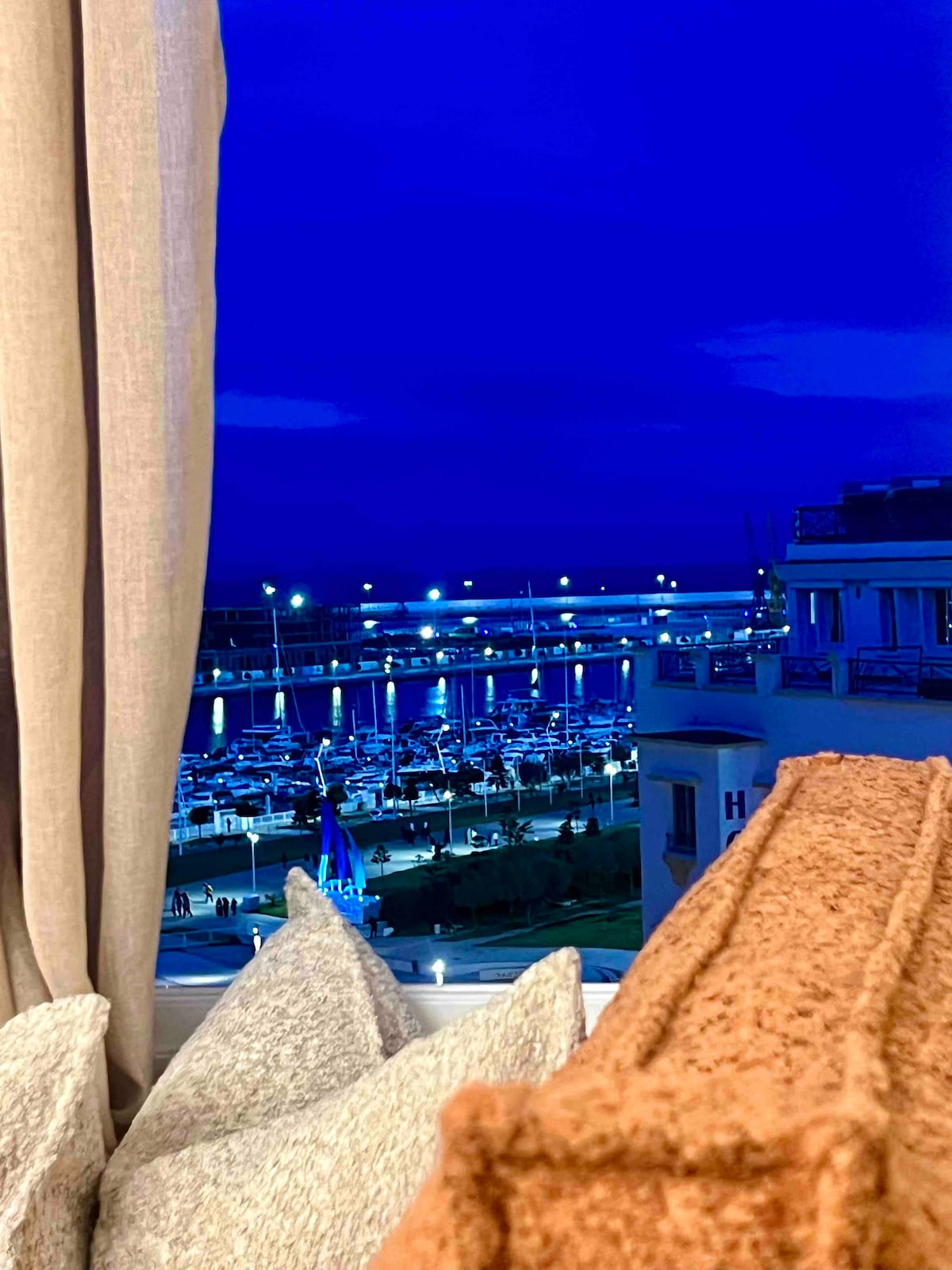 Experience a true beachfront, heart of downtown escape in this spacious 3-bedroom sea-view apt with a private garage and an unbeatable location on Tangier’s Marina Bay Corniche. What you'll love: • Direct access to Corniche promenades. • 135 m² of pure comfort • Fast Wi-Fi & Smart TV • Private garage (rare in this area!) • Fully equipped kitchen • Easy access to taxis & public transport The apt offers the ultimate Tangier lifestyle, perfect for families and friends seeking to discover the city.